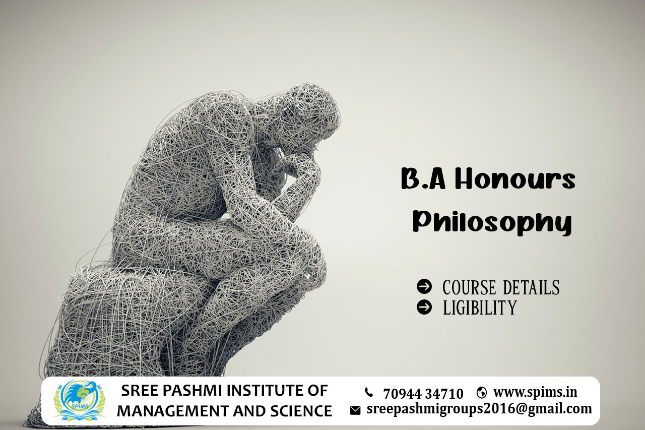 B.A Honours Philosophy / B.A Honours Philosophy course / B.A Honours Philosophy Degree/ B.A Honours Philosophy Eligibility/ Scope of B.A Honours Philosophy/ Salary of B.A Honours Philosophy / Importance of studying B.A Honours Philosophy / Subject involved in B.A Honours Philosophy course/ Benefits of taking B.A Honours Philosophy / B.A Honours Philosophy in Online Education/ Career opportunities for B.A Honours Philosophy graduate/B.A Honours Philosophy distance education/B.A Honours Philosophy in top University India/B.A Honours Philosophy in top University Tamilnadu / B.A Honours Philosophy in top University Coimbatore/B.A Honours Philosophy in online education. B.A Honours Philosophy is an undergraduate degree program that focuses on the study of philosophy, which involves critical thinking, analysis of arguments, and exploration of fundamental questions about knowledge, existence, ethics, and the nature of reality. It is designed to develop students’ critical thinking skills and to help them gain a deeper understanding of philosophical ideas. Students are encouraged to explore the history of philosophy, from ancient times to the present, as well as to engage with contemporary philosophical debates. The program also focuses on the development of writing and research skills in order to prepare students for further academic study and professional work. Eligibility for B.A Honours Philosophy Completion of 10+2 or equivalent examination from a recognized educational board. Meeting the minimum percentage or grade requirements set by the respective institution. Some universities may also conduct entrance exams or interviews for admission to the B.A Honours Philosophy program. Contact Sree Pashmi Institute of Management and Science to get enrolled for distance education degrees in the best-reputed university. This is the best leading institute for distance education in Coimbatore. All the study materials, E-materials, ID cards, Syllabus, Hall tickets, and Exam Time tables will be provided by us. You will get the proper guidance from the start till finishing your degree without any difficulties in between.