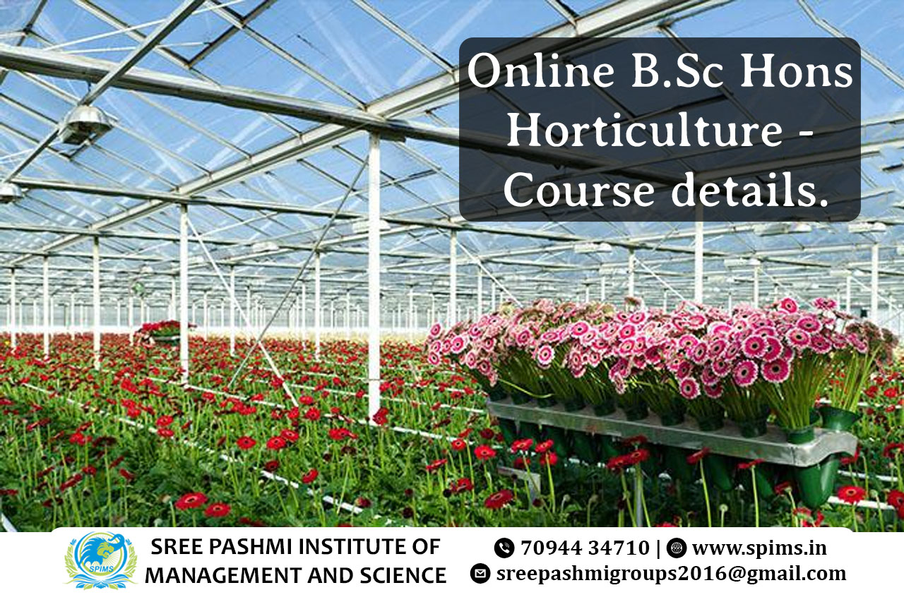 B.Sc Hons Horticulture course / B.Sc Hons Horticulture Degree/ B.Sc Hons Horticulture course Eligibility/ Scope of B.Sc Hons Horticulture course / Salary of B.Sc Hons Horticulture course / Importance of studying B.Sc Hons Horticulture course/ Subject involved in B.Sc Hons Horticulture course/ Benefits of taking B.Sc Hons Horticulture course / B.Sc Hons Horticulture course in Online Education/ Career opportunities for B.Sc Hons Horticulture course graduate/ B.Sc Hons Horticulture course distance education / B.Sc Hons Horticulture course in top University India/ B.Sc Hons Horticulture course in top University Tamilnadu / B.Sc Hons Horticulture course in top University Coimbatore / B.Sc Hons Horticulture course in online education in Coimbatore/ B.Sc Hons Horticulture course in online education in Tamilnadu / B.Sc Hons Horticulture course in online education in India / Online B.Sc Hons Horticulture/ Online B.Sc Hons Horticulture degree Online B.Sc Hons Horticulture programs provide in-depth knowledge and skills in horticulture, including plant cultivation, landscaping, and agricultural technology. Candidates should have completed their 10th, +2 education in the science stream (Physics, Chemistry, Biology/Mathematics) from a recognized board. The duration of the Online B.Sc Hons Horticulture program is typically three to four years, depending on the institution. Subjects covered under the B.Sc Hons Horticulture course are as follows; Plant Biology Soil Science Horticultural Crop Production Plant Pathology Entomology Genetics and Plant Breeding Agronomy Post-Harvest Technology Landscaping Horticultural Entrepreneurship Online B.Sc Hons Horticulture programs often include practical sessions, internships, and field visits to provide hands-on experience in horticultural practices and techniques. Graduates can pursue careers as Horticulturists, Landscape Designers, Plant Breeders, Nursery Managers, Agricultural Consultants, and more. They can work in agricultural companies, research institutions, government agencies, or start their own horticultural businesses. Here at Sree Pashmi Institute of Management and Science, you can find all types of UG, PG, Diploma, PG Diploma, and certificate programs in the distance and online education modes. Enrolling in distance or online education courses via Sree Pashmi Institute of Management and Science, you can get UGC-approved degree certificates along with A+ grade mark sheets from your enrolled University. Also, we provide the students with exclusive online courses, live sessions, and other educational benefits.