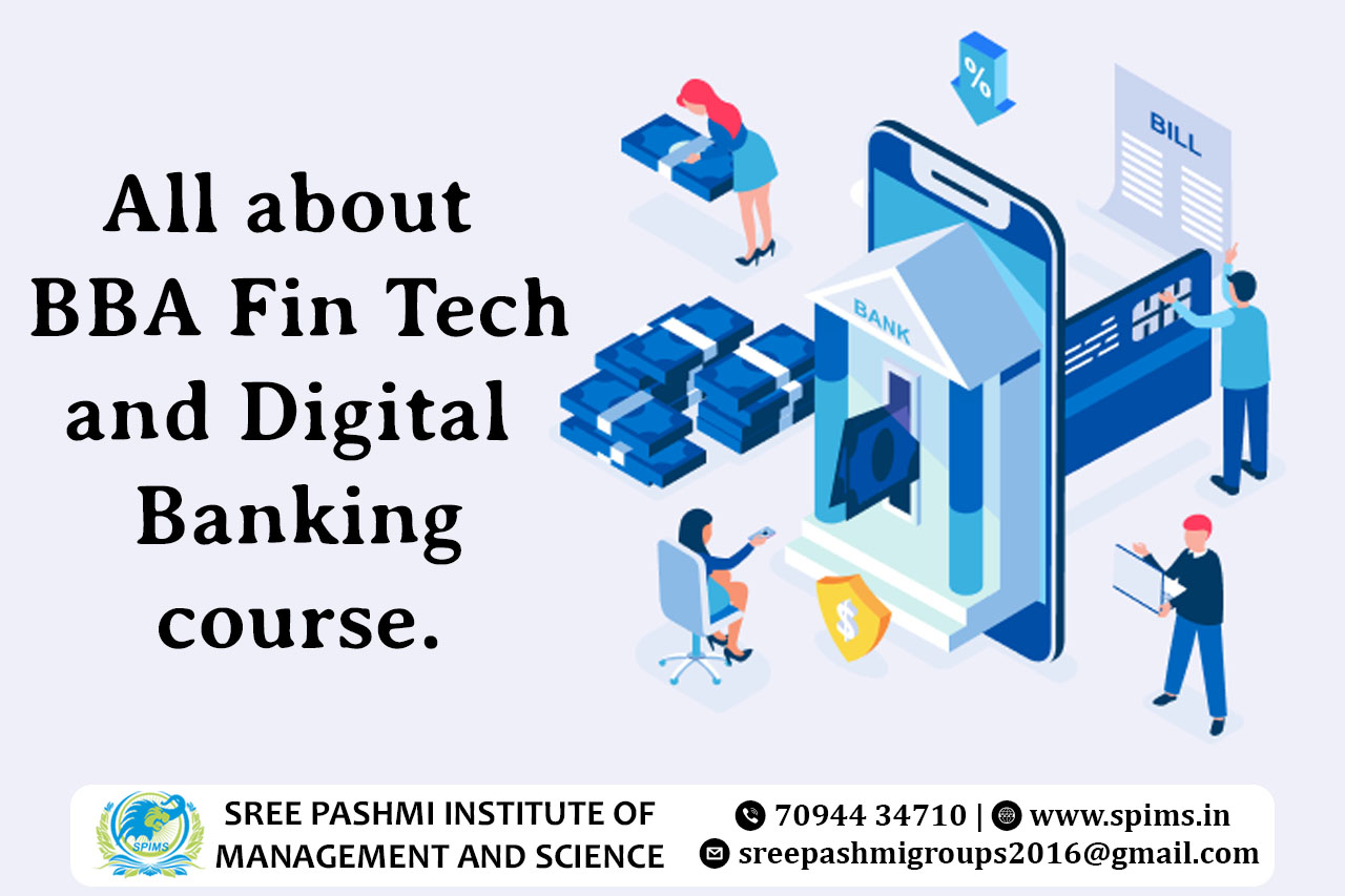 BBA Fin Tech and Digital Banking / BBA Fin Tech and Digital Banking course / BBA Fin Tech and Digital Banking Degree/ BBA Fin Tech and Digital Banking Eligibility/ Scope of BBA Fin Tech and Digital Banking/ Salary of BBA Fin Tech and Digital Banking / Importance of studying BBA Fin Tech and Digital Banking/ BBA Fin Tech and Digital Banking in top University India/ Subject involved in BBA Fin Tech and Digital Banking course/ Benefits of taking BBA Fin Tech and Digital Banking/ BBA Fin Tech and Digital Banking in online education in India / Online BBA Fin Tech and Digital Banking/ BBA Fin Tech and Digital Banking in Online Education/ Career opportunities for BBA Fin Tech and Digital Banking graduate/BBA Fin Tech and Digital Banking distance education / BBA Fin Tech and Digital Banking in top University Tamilnadu / BBA Fin Tech and Digital Banking in top University Coimbatore / BBA Fin Tech and Digital Banking in online education in Coimbatore/ BBA Fin Tech and Digital Banking in online education in Tamilnadu. The Bachelor of Business Administration (BBA) in FinTech and Digital Banking is a specialized undergraduate program that integrates business administration principles with cutting-edge technologies in the financial sector. This program is designed to equip students with a comprehensive understanding of financial technology and its applications in the context of modern banking.The curriculum typically covers a range of subjects, including core business concepts, financial management, and the latest advancements in FinTech and digital banking. Students gain insights into blockchain technology, cryptocurrency, data analytics, cybersecurity, and mobile banking. The interdisciplinary nature of the program allows graduates to bridge the gap between traditional financial services and the rapidly evolving digital landscape. Key components of the BBA in FinTech and Digital Banking may include hands-on projects, case studies, and internships to provide practical experience. The goal is to prepare students for roles where they can leverage technology to enhance financial processes, improve customer experiences, and address challenges in the evolving financial industry.Upon completion of the program, graduates are well-positioned for careers in various areas, such as financial technology startups, traditional banking institutions undergoing digital transformation, regulatory bodies, and consulting firms specializing in FinTech.In summary, the BBA in FinTech and Digital Banking offers a forward-looking curriculum that blends traditional business education with a focus on emerging technologies, preparing students to navigate and contribute to the dynamic landscape of financial services. Here at Sree Pashmi Institute of Management and Science, you can find all types of UG, PG, Diploma, PG Diploma, and certificate programs in the distance and online education modes. Enrolling in distance or online education courses via Sree Pashmi Institute of Management and Science, you can get UGC-approved degree certificates along with A+ grade mark sheets from your enrolled University. Also, we provide the students with exclusive online courses, live sessions, and other educational benefits.
