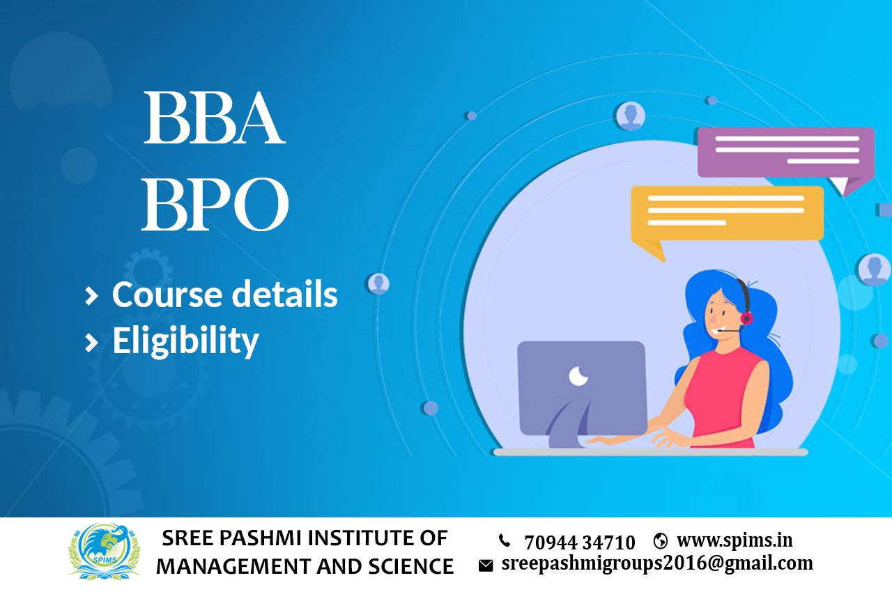 BBA in BPO / BBA in BPO course /BBA in BPO Degree/ BBA in BPO Eligibility/ Scope of BBA in BPO / Salary of BBA in BPO/ Importance of studying BBA in BPO/ Subjects involved in BBA in BPO course/ Benefits of taking BBA in BPO / BBA in BPO in Online Education/ Career opportunities for BBA in BPO graduate/BBA in BPO distance education. BBA BPO (Bachelor of Business Administration in Business Process Outsourcing) is a specialized undergraduate program that focuses on the management and administration of business processes outsourcing (BPO) operations. It equips students with the necessary knowledge and skills to effectively manage and optimize various business processes that are outsourced to third-party service providers. Eligibility: -To be eligible for BBA BPO program, students typically need to meet the following criteria: -Completion of 10+2 or equivalent examination from a recognized board or university. -Meeting the minimum percentage requirement (varies by institution) Contact SPIMS to get enrolled for distance education degrees in the best-reputed university. All the study materials, E-materials, ID cards, Syllabus, Hall tickets, and Exam Time tables will be provided. You will get the proper guidance from the start till finishing your degree.