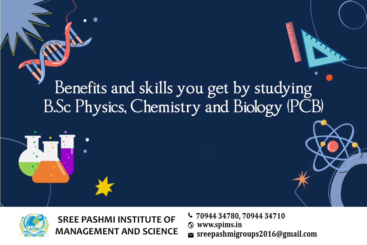 Benefits of taking B.Sc Physics, Chemistry and Biology / B.Sc Physics, Chemistry and Biology / B.Sc Physics, Chemistry and Biology What is it about/ Scope of B.Sc Physics, Chemistry and Biology / Salary of B.Sc Physics, Chemistry and Biology / Importance of studying B.Sc Physics, Chemistry and Biology/ B.Sc Physics, Chemistry and Biology distance education/ B.Sc Physics, Chemistry and Biology in distance education/ Eligibility for pursuing B.Sc Physics, Chemistry and Biology/ Career opportunities for B.Sc Physics, Chemistry, and Biology graduate/Subject involved in B.Sc Physics, Chemistry, and Biology course. There are recruiters both in the public and government sectors for candidates with biological backgrounds. Students who complete the B.Sc Physics, Chemistry, and Biology degree will have a plethora of options available to them. They can pursue careers such as Biology Content Developer, Biological Technician, and Conservationist, among others. A B.Sc Biology degree opens up several chances in Research and Development, Pharmaceuticals, and Chemical Industries. There are also opportunities in Public Health and Environmental Protection Sectors, Clinical Research, Waste Management, and so on. Once the candidates complete their B.Sc Physics, Chemistry, and Biology with Biology, students have a plethora of alternatives from which to pick and quickly pursue future educational endeavors. Furthermore, they have the option of pursuing a career in a completely unrelated field of employment like MBBS \BDS, Veterinary Medicine, Occupational Therapy, Viticulture, Biology of the Sea or Marine Biology, Biophysics, Food, and Agriculture Sciences, Microbiology, Biochemistry, Botany, Bioinformatics, Environmental Science, Physiology or Zoology. Even the teaching option remains an option for interested B.Sc Physics, Chemistry, and Biology candidates. Are you still waiting to start your distance learning? Sree Pashmi Institute of Management and Science in Coimbatore is the best choice for your higher education. Here you can get amazing distance education programs from well-reputed universities in and around India. Moreover, you can get full coordination from the start to the end of your course. So don’t wait to enroll in a distance education course at Sree Pashmi Institute of Management and Science and gain the benefits of quality education.