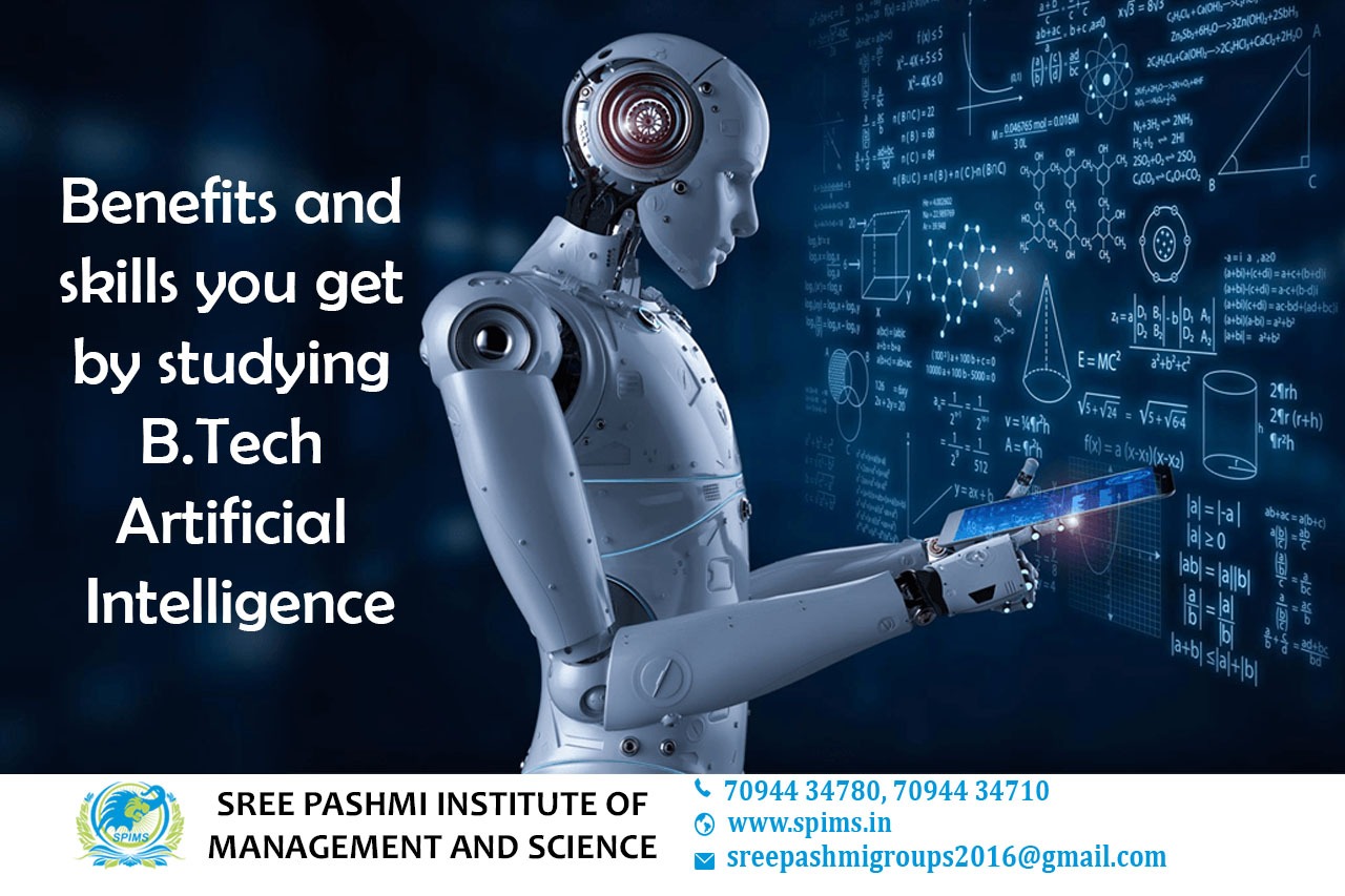 Benefits of taking B.Tech Artificial Intelligence / B.Tech Artificial Intelligence / B.Tech Artificial Intelligence What is it about/ Scope of B.Tech Artificial Intelligence / Salary of B.Tech Artificial Intelligence / Importance of studying B.Tech Artificial Intelligence/ B.Tech Artificial Intelligence distance education/ B.Tech Artificial Intelligence in distance education/ Eligibility for pursuing B.Tech Artificial Intelligence/ Career opportunities for B.Tech Artificial Intelligence graduate/Subject involved in B.Tech Artificial Intelligence course. The B.Tech Artificial Intelligence is designed for students who want to get into machine technologies such as designing, repairing, and mining internal systems for computers, robots, and other machine-based systems. Many software and other AI-related industries are always looking for Graduates with B.Tech in Artificial Intelligence. Because of this, students have various job opportunities after completing this course.B.Tech Artificial Intelligence courses in India are designed to teach students how to create intelligent machines, computer software, and an application mix of machine learning. They will learn about real-time software development as well as programming languages. Aside from that, theories about physics, software applications, computer theories, mathematical theories, and machine learning are taught between semesters in the B.Tech Artificial Intelligence course. Graduates are typically hired as Chief Technology Officers, Data Analysts, Quality Analysts, Data Scientists, Software Designers, and so on. They work in information technology firms, government agencies, software development firms, and consulting services. Other benefits the students can gain are; → Get a change from top recruiters → Exclusive internship with top companies → Boost confidence in real-life experience → Innovative career paths and so on. Are you still waiting to start your distance learning? Sree Pashmi Institute of Management and Science in Coimbatore is the best choice for your higher education. Here you can get amazing distance education programs from well-reputed universities in and around India. Moreover, you can get full coordination from the start to the end of your course. So don’t wait to enroll in a distance education course at Sree Pashmi Institute of Management and Science and gain the benefits of quality education.