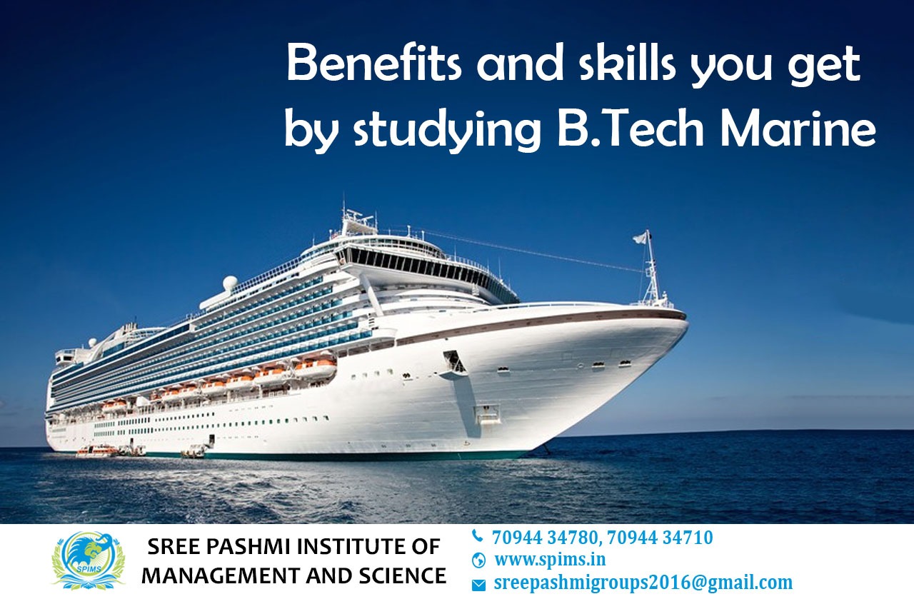 Benefits of taking B.Tech Marine / B.Tech Marine / B.Tech Marine What is it about/ Scope of B.Tech Marine / Salary of B.Tech Marine / Importance of studying B.Tech Marine/ B.Tech Marine distance education/ B.Tech Marine in distance education/ Eligibility for pursuing B.Tech Marine/ Career opportunities for B.Tech Marine graduate/Subject involved in B.Tech Marine course. The goal to attain a B.Tech Marine degree will depend on each individual’s aspirations and desires. Some of the reasons to pursue this course are as follows. Reputed profession: Marine Engineering is a high-demand field where skilled graduates can find open job positions immediately. Any student with the passion to excel in the field will find success soon. High pay: Average packages for B.Tech Marine graduates are on the higher side for both private and public organizations. This course demands extensive off-shore training, initially for 6 months, and upon completion, students will get certified as a Grade IV naval marine engineer by the Ministry of Shipping, Government of India. Given the scale of work, the pay is also on the higher side. Career opportunities: A Marine Engineer can pursue a diverse array of career opportunities. There is no limit to the educational programs one can choose. From law, and management to competitive examinations to getting employed in Government organizations, the sky's the limit. On completion of this program, students will be able to get handsome salary packages ranging between INR 3, 00, 000 and INR 10, 00, 000 depending on the candidate’s expertise in the field. Candidates can further pursue PG courses such as M.Tech, and Master of Engineering courses after completing this course. Are you still waiting to start your distance learning? Sree Pashmi Institute of Management and Science in Coimbatore is the best choice for your higher education. Here you can get amazing distance education programs from well-reputed universities in and around India. Moreover, you can get full coordination from the start to the end of your course. So don’t wait to enroll in a distance education course at Sree Pashmi Institute of Management and Science and gain the benefits of quality education.