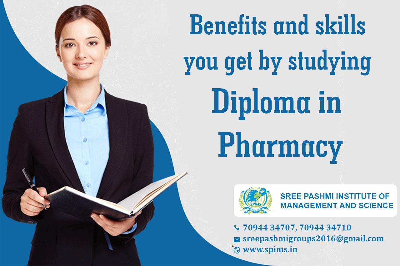 Benefits of taking Diploma in Pharmacy / Diploma in Pharmacy / Diploma in Pharmacy What is it about/ Scope of Diploma in Pharmacy / Salary of Diploma in Pharmacy / Importance of studying Diploma in Pharmacy/ Diploma in Pharmacy in distance education/ Diploma in Pharmacy in distance education/ Eligibility for pursuing Diploma in Pharmacy/ Career opportunities for Diploma in Pharmacy graduate/Subject involved in Diploma in Pharmacy course. Diploma in Pharmacy is the minimum qualification required to be a registered Pharmacist in India. One can go for higher academic degree courses like Master of Pharmacy where one can specialize in a preferred field. Diploma in Pharmacy also enables a candidate to go for higher studies abroad. Diploma in Pharmacy also enables one to study Ph.D. (Pharmacy) in Pharmaceutics, Pharmaceutical Chemistry, Pharmacology, Pharmaceutical Marketing and Management. Diploma in Pharmacy Employment areas are Health Centers, Hospitals, Chemist Shops, Drug Control Administration, Pharmaceutical Firms, Home Tuition, Sales and Marketing Department, Research Agencies, Food and Drug Administration. The scope of employment goes higher than one can go for jobs which are only research-based. Some beneficial roles are Technical Supervisor, Medical Transcriptionist, Pharmacist, Quality Analyst, Scientific Officer, Tutor, Production Executive and so on. Diploma in Pharmacy graduates should develop good research and analytical skills. They should be good at communication skills and creative in bringing innovative ideas. A few necessary skills for Diploma in Pharmacy graduates are → Strong Interpretation Skills → Strong Analytical Skills → Good Communication Skills → Good Research Skills → Strong Interpretation Skills Are you still waiting to start your distance learning? Sree Pashmi Institute of Management and Science in Coimbatore is the best choice for your higher education. Here you can get amazing distance education programs from well-reputed universities in and around India. Moreover, you can get full coordination from the start to the end of your course. So don’t wait to enroll in a distance education course at Sree Pashmi Institute of Management and Science and gain the benefits of quality education.