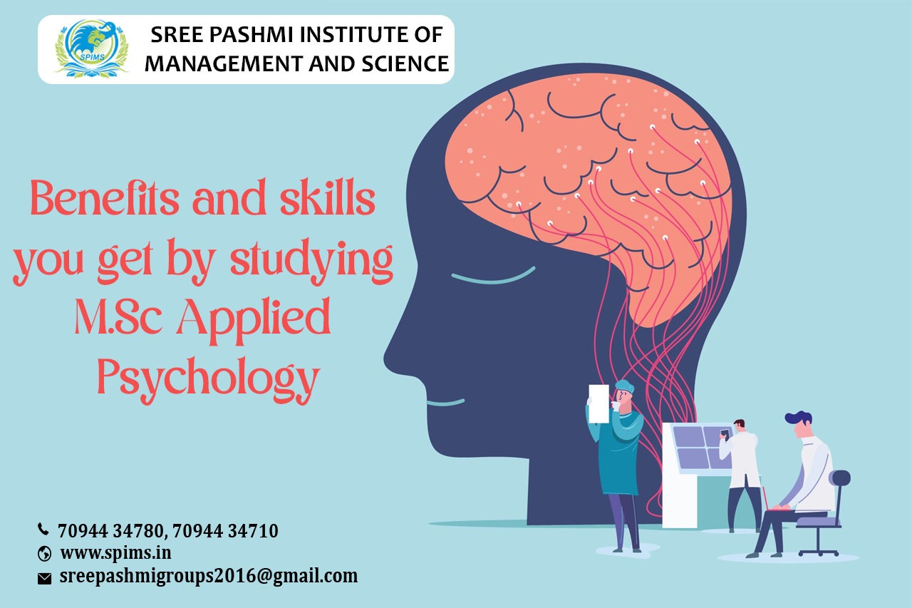 Benefits of taking M.Sc Applied Psychology/ M.Sc Applied Psychology/ M.Sc Applied Psychology What is it about/ Scope of M.Sc Applied Psychology/ Salary of M.Sc Applied Psychology/ Importance of studying M.Sc Applied Psychology/ M.Sc Applied Psychology in distance education/ M.Sc Applied Psychology distance education/ Eligibility for pursuing M.Sc Applied Psychology/ Career opportunities for M.Sc Applied Psychology graduate/Subject involved in M.Sc Applied Psychology course. MSc Applied Psychology is a postgraduate program in the applied psychology discipline of 2 years duration. Doing a master's in psychology and its applied fields is completely up to the decision of the aspirants. In general, two major sub-fields are categorized under psychology research psychology and applied psychology. Research psychologists occupy the laboratory to research studies to find the answers related to mental health. Applied psychologists comply with the principles of psychology in finding the results attempted by the research psychologists. Applied psychology also attempts to help patients or individuals suffering from mental stress and work stress, life stress to sustain, etc. The experts in applied psychology adapt theories and concepts to develop human mental ability. Hence the faculty focuses on the development of research and analysis in psychology with the concerned theories associated. MSc applied psychology aims to apply the knowledge and findings earned in research psychology to the developmental behavior of patients with psychological problems. The psychologists are called counseling psychologists or clinical psychologists. -They can take up private teaching roles in schools and, after passing the NET test, become permanent lecturers at colleges. -They can visit research facilities and academic institutions, as well as pharmaceutical and biotechnology firms. -Other employment options include management consulting, legal and accounting organizations, and retail businesses. There are many skills that an M.Sc Applied Psychology graduate needs to have to ensure that they succeed in their careers. Some of these skills are listed below: -Flexible Temperament -Ability to Work Under Pressure -Time Management Skills -Quantitative Ability Skills -Logical Reasoning Skills The graduates can be benefited by getting employment in the areas like Welfare organizations, the advertising industry, colleges, defense forces, hospitals, community and mental health centers, prisons and correctional programs and institutions, counseling, child care, clergy, rehabilitation centers, youth guidance with the job positions like Community relations officer, developmental psychologist, research psychologist, child-support specialist, clinical psychologist, neuropsychologist, clergymen, psychiatric assistant, school psychologist, social psychologist, etc. Are you still waiting to start your distance learning? Sree Pashmi Institute of Management and Science in Coimbatore is the best choice for your higher education. Here you can get amazing distance education programs from well-reputed universities in and around India. Moreover, you can get full coordination from the start to the end of your course. So don’t wait to enroll in a distance education course at Sree Pashmi Institute of Management and Science and gain the benefits of quality education.