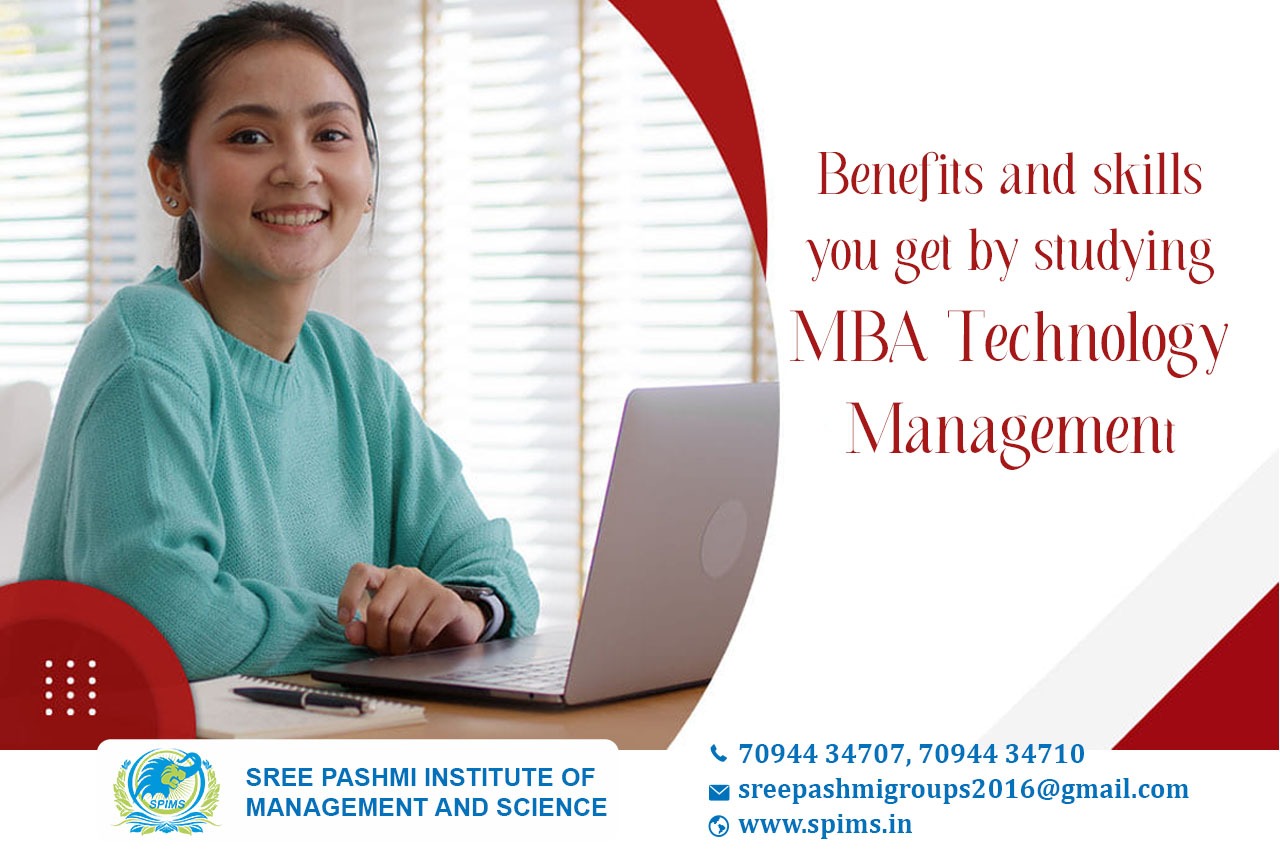 Benefits of taking MBA Technology Management/ MBA Technology Management/ MBA Technology Management What is it about/ Scope of MBA Technology Management/ Salary of MBA Technology Management / Importance of studying MBA Technology Management/ MBA Technology Management in distance education/ MBA Technology Management distance education/ Eligibility for pursuing MBA Technology Management/ Career opportunities for MBA Technology Management graduate/Subject involved in MBA Technology Management course. MBA Technology Management students learn the value of innovation and how to manage and promote innovation to maximize its effect. The MBA Technology Management syllabus includes topics like Product Analysis, how to assess Emerging Trends, Communication Skills that benefit Team Building, and more. Subjects taught in MBA Technology Management include Technology Strategy, Technology Forecasting, Technology Road Maps, Technology Project Portfolio, etc. They can also pursue Higher degree programs in relevant fields such as Ph.D. which are also an ideal option for their future. They may get benefited from the employment areas like Academic Institutions, Consulting Services, Healthcare Organizations, Insurance and Financial Companies, Technology Company, etc. Some people are enthusiastic about technology and intend to pursue it professionally in the future. The course is designed to help students achieve this goal by providing them with a wide range of topic content. The following are some skills that are required: → Analytical Skill → Critical Thinking Skill → Communication Skill → Ability to Manipulate Precise and Intricate ideas While pursuing an MBA in Technology Management, a student not only understands the value of innovation but also learns how to coordinate and promote the innovation to maximize its effect. The highest salary for even MBA Technology Management freshers can go as high as above INR 30, 00, 000, depending on the expertise and knowledge of the candidates. Are you still waiting to start your distance learning? Sree Pashmi Institute of Management and Science in Coimbatore is the best choice for your higher education. Here you can get amazing distance education programs from well-reputed universities in and around India. Moreover, you can get full coordination from the start to the end of your course. So don’t wait to enroll in a distance education course at Sree Pashmi Institute of Management and Science and gain the benefits of quality education.
