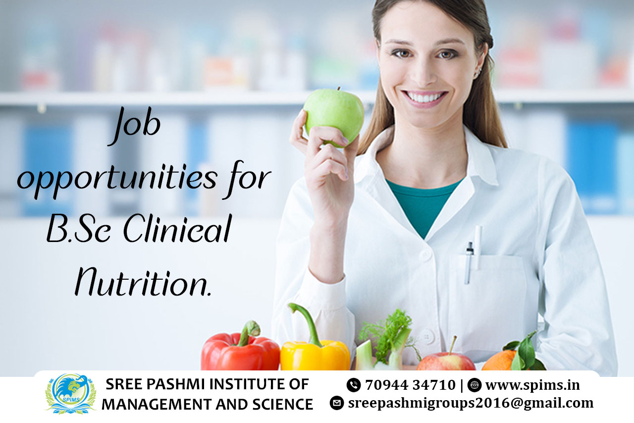 Career opportunities for B.Sc Clinical Nutrition course graduate/ B.Sc Clinical Nutrition course / B.Sc Clinical Nutrition Degree/ B.Sc Clinical Nutrition course Eligibility/ Scope of B.Sc Clinical Nutrition course / Salary of B.Sc Clinical Nutrition course / Importance of studying B.Sc Hons Clinical Nutrition course/ Subject involved in B.Sc Clinical Nutrition course/ Benefits of taking B.Sc Clinical Nutrition course / B.Sc Clinical Nutrition course in Online Education/ B.Sc Clinical Nutrition course distance education / B.Sc Clinical Nutrition course in top University India/ B.Sc Clinical Nutrition course in top University Tamilnadu / B.Sc Clinical Nutrition course in top University Coimbatore / B.Sc Clinical Nutrition course in online education in Coimbatore/ B.Sc Clinical Nutrition course in online education in Tamilnadu / B.Sc Clinical Nutrition course in online education in India / Online B.Sc Clinical Nutrition / Online B.Sc Clinical Nutrition degree B.Sc Clinical Nutrition graduates have a wide array of job opportunities in the healthcare and wellness sectors. Their expertise in understanding the nutritional needs of individuals and managing diet-related health conditions makes them valuable professionals. Here are various career paths they can pursue: Work in hospitals, clinics, or private practices, assessing patients' nutritional needs and designing customized diet plans to manage various health conditions. Provide nutrition counseling and wellness programs in fitness centers, gyms, and spas to promote healthy lifestyles and weight management. Work with community health organizations, NGOs, or government agencies to develop and implement nutrition programs addressing specific community needs. Advise athletes and sports teams on proper nutrition to enhance performance, optimize recovery, and prevent injuries. Collaborate with food companies for product development, nutritional analysis, and labeling compliance. Engage in research related to nutrition, food science, or healthcare, contributing to the development of new products or therapies. Work with government health departments or international organizations, focusing on public health initiatives, policy-making, and education to improve community nutrition. Become educators in schools, colleges, or universities, shaping the next generation of nutrition professionals. Contribute to clinical trials related to nutrition or work in pharmaceutical companies developing nutrition-related medications and supplements. Provide virtual nutrition consultations, advice, and support through online platforms and telehealth services. Graduates can also pursue advanced degrees (M.Sc or Ph.D.) for specialized roles or research positions. Continuous learning and staying updated with the latest nutritional trends and research are essential for a successful and fulfilling career in clinical nutrition. Sree Pashmi Institute of Management and Science is the leading distance education center in Coimbatore. Here you can find all UG, PG, Diploma, Certificate, and PG Diploma programs in the distance and online modes of education. Especially, when you join Sree Pashmi Institute of Management and Science, you can receive 7-value added courses such as the management field, such as HR, Technology Management, Entrepreneurship, Finance and Accounting, Digital marketing, Sales and Marketing, and Personal Branding for free.