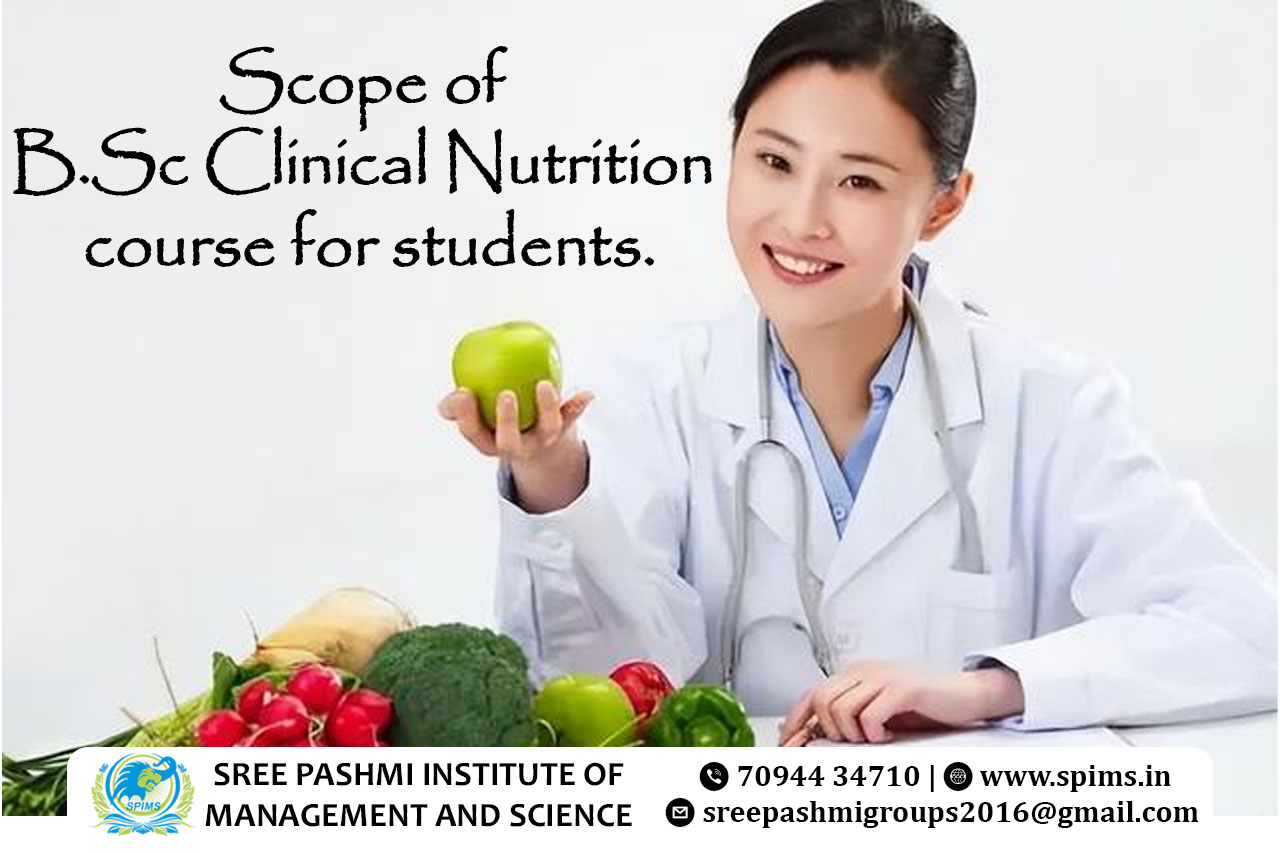 Career opportunities for B.Sc Clinical Nutrition course graduate/ B.Sc Clinical Nutrition course / B.Sc Clinical Nutrition Degree/ B.Sc Clinical Nutrition course Eligibility/ Scope of B.Sc Clinical Nutrition course / Salary of B.Sc Clinical Nutrition course / Importance of studying B.Sc Hons Clinical Nutrition course/ Subject involved in B.Sc Clinical Nutrition course/ Benefits of taking B.Sc Clinical Nutrition course / B.Sc Clinical Nutrition course in Online Education/ B.Sc Clinical Nutrition course distance education / B.Sc Clinical Nutrition course in top University India/ B.Sc Clinical Nutrition course in top University Tamilnadu / B.Sc Clinical Nutrition course in top University Coimbatore / B.Sc Clinical Nutrition course in online education in Coimbatore/ B.Sc Clinical Nutrition course in online education in Tamilnadu / B.Sc Clinical Nutrition course in online education in India / Online B.Sc Clinical Nutrition / Online B.Sc Clinical Nutrition degree The field of clinical nutrition offers a wide range of opportunities for students who have completed their B.Sc in Clinical Nutrition. Here's a look at the scope of the course: Clinical Nutritionist/Dietitian: Hospitals: Work in hospitals, clinics, or healthcare facilities, assessing patients' nutritional needs and designing customized diet plans for various medical conditions. Private Practice: Open your private practice, providing personalized nutrition counseling to individuals or specific groups. Pediatric Nutritionist: Specialize in child nutrition, working with pediatricians to ensure proper nutrition for infants and children. Food and Nutrition Consultant:Work with food companies, restaurants, or catering services, advising on nutrition content, menu planning, and healthy food choices. Research and Development:Engage in research related to nutrition, food science, or public health. Contribute to the development of new food products or nutritional supplements.Work in research institutions, universities, or private research organizations studying the effects of nutrition on health and disease prevention. Public Health Nutritionist:Collaborate with government agencies, NGOs, or international organizations to develop and implement nutrition education programs.Contribute to public health policies related to nutrition, food security, and dietary guidelines. Corporate Wellness Programs:Work with corporations to design employee wellness programs, focusing on nutrition and healthy lifestyle choices.Conduct workshops and seminars on healthy eating habits, stress management, and disease prevention. Teaching and Academia: Pursue higher education (Master’s, Ph.D.) and enter academia, teaching nutrition and related courses in colleges and universities.Contribute to academic research and mentor aspiring nutritionists. Nutrition Journalism and Media: Become a nutrition writer or journalist, contributing articles or blogs to magazines, newspapers, or online platforms. Work in television or radio, providing expert opinions on nutrition and healthy eating habits. Non-Profit Organizations: Collaborate with non-profit organizations focused on nutrition and food security, both locally and internationally, to address malnutrition and promote sustainable food practices. Sports Nutritionist: Work with athletes, sports teams, or fitness centers, providing specialized nutrition plans to enhance athletic performance and support recovery. The demand for qualified clinical nutritionists and dietitians is steadily increasing due to the growing awareness of the importance of nutrition in overall health. As a B.Sc Clinical Nutrition graduate, they have the opportunity to contribute significantly to people's well-being and make a positive impact on public health while building a rewarding and fulfilling career. Are you still waiting to start your Online learning? Sree Pashmi Institute of Management and Science in Coimbatore is the best choice for your higher education. Here you can get amazing distance education programs from well-reputed universities in and around India. Moreover, you can get full coordination from the start to the end of your course. So don’t wait to enroll in a distance education course at Sree Pashmi Institute of Management and Science and gain the benefits of quality education.