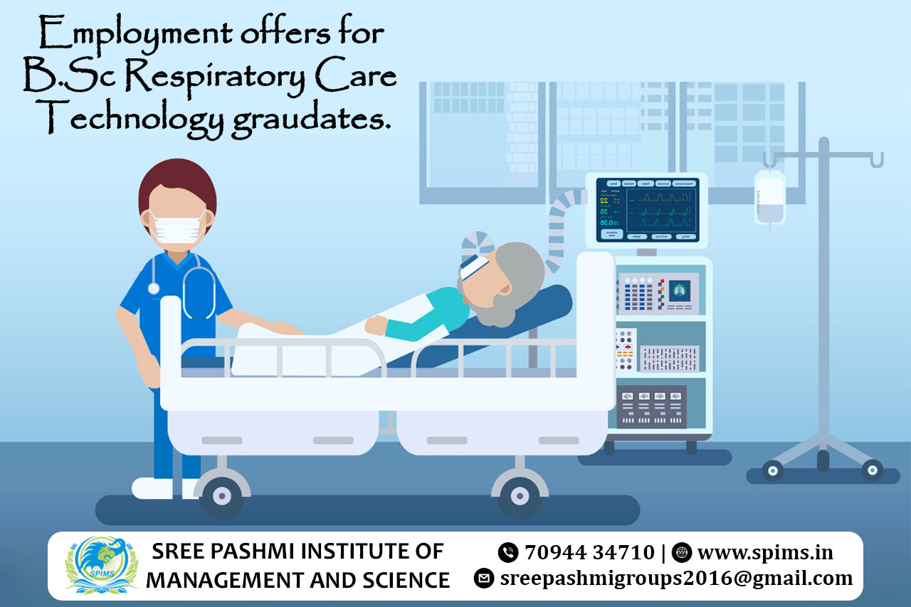 Career opportunities for B.Sc Respiratory Care Technology course graduate/ B.Sc Respiratory Care Technology course / B.Sc Respiratory Care Technology Degree/ B.Sc Respiratory Care Technology course Eligibility/ Scope of B.Sc Respiratory Care Technology course / Salary of B.Sc Respiratory Care Technology course / Importance of studying B.Sc Respiratory Care Technology course/ Subject involved in B.Sc Respiratory Care Technology course/ Benefits of taking B.Sc Respiratory Care Technology course / B.Sc Respiratory Care Technology course in Online Education/ B.Sc Respiratory Care Technology course distance education / B.Sc Respiratory Care Technology course in top University India/ B.Sc Respiratory Care Technology course in top University Tamilnadu / B.Sc Respiratory Care Technology course in top University Coimbatore / B.Sc Respiratory Care Technology course in online education in Coimbatore/ B.Sc Respiratory Care Technology course in online education in Tamilnadu / B.Sc Respiratory Care Technology course in online education in India / Online B.Sc Respiratory Care Technology / Online B.Sc Respiratory Care Technology degree. B.Sc Respiratory Care Technology graduates have diverse employment opportunities in various healthcare settings due to their specialized skills in respiratory care. Here are some potential employment offers for B.Sc Respiratory Care Technology graduates: Respiratory Therapist: Work in hospitals, clinics, and emergency rooms to assess, treat, and care for patients with respiratory disorders. Intensive Care Unit (ICU) Technician: Assist in managing ventilators and respiratory equipment for critically ill patients in ICUs. Pulmonary Function Technologist: Conduct pulmonary function tests to diagnose respiratory conditions and assess lung function. Home Care Respiratory Therapist: Provide respiratory care services to patients in their homes, ensuring continuity of care for those with chronic respiratory conditions. Pulmonary Function Laboratory Technologist: Perform pulmonary function tests in diagnostic centers, aiding in the diagnosis and monitoring of respiratory diseases. Medical Sales Representative: Work for companies selling respiratory care equipment, educating healthcare professionals about new technologies and products. Research Assistant: Assist in research projects related to respiratory diseases and therapies, contributing to advancements in the field. Educator: Work as educators in colleges, universities, or training institutes, teaching future respiratory therapists. Public Health Respiratory Therapist: Work in government health departments, educating the public on respiratory health and providing support in public health programs. Cardiopulmonary Rehabilitation Specialist: Assist in cardiac and pulmonary rehabilitation programs, helping patients recover after heart and lung surgeries. Sleep Technologist: Work in sleep clinics, conducting sleep studies to diagnose sleep disorders like sleep apnea. Medical Affairs Specialist: Provide medical expertise to pharmaceutical companies, supporting the development and marketing of respiratory medications and therapies. Overseas Opportunities: Explore employment opportunities in countries with a high demand for skilled respiratory therapists, offering diverse cultural experiences. B.Sc Respiratory Care Technology graduates are essential members of healthcare teams, playing a crucial role in improving the lives of patients with respiratory ailments. The demand for these professionals continues to grow, ensuring a wide range of employment opportunities both locally and internationally. Sree Pashmi Institute of Management and Science is the leading distance education center in Coimbatore. Here you can find all UG, PG, Diploma, Certificate, and PG Diploma programs in the distance and online modes of education. Especially, when you join Sree Pashmi Institute of Management and Science, you can receive 7-value added courses such as the management field, such as HR, Technology Management, Entrepreneurship, Finance and Accounting, Digital marketing, Sales and Marketing, and Personal Branding for free.