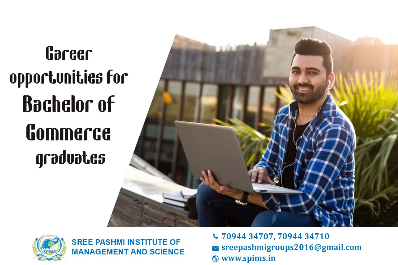 Career opportunities for Bachelor of Commerce/ Bachelor of Commerce What is it about/ Scope of Bachelor of Commerce / Salary of Bachelor of Commerce / Importance of studying Bachelor of Commerce/ Benefits of taking Bachelor of Commerce/ Eligibility for pursuing Bachelor of Commerce / Bachelor of Commerce details. B.Com jobs are plenty for graduates. B.Com syllabus and subjects also include research and accounting along with business, economics, and taxation which helps them to build their careers in diverse fields. In addition, there is plenty of B.Com course scope for the graduates in the field of teaching after completion of graduation, and even there is broad scope in public and private sectors of various organizations. Since commerce and related domains have been accepted as a universal language worldwide, the job scope for B.Com graduates is in excellent numbers. Therefore, after B.Com, jobs and courses' salaries are in a wide range. The average salary for a B.Com graduate is around INR 4.42 LPA. After completing the course, the students can enter any related organizations and work accordingly. Some B.Com fresher's jobs are: → Auditors → Cost Estimators → Stock Brokers → Investment Analyst → Investment Banker → Certified Public Accountant B.Com job designation for aspirants with experience are: → Marketing Manager → Marketing Researcher → Human Resource Managers → Chief Financial Officer → Chartered Management Accountant B.Com graduates are recruited to almost every area of working profiles. As commerce is one of the important branches of study, most organizations prefer B.Com graduates over others. Jobs after B.Com are in diverse fields. Some areas of Recruitment are Research, Accounting, Management, Commerce, Associates, MNCs, Government Financial Agencies, Conglomerates, Financial Houses, etc. Sree Pashmi Institute of Management and Science is the leading distance education center in Coimbatore. Here you can find all UG, PG, Diploma, Certificate, and PG Diploma programs in the distance and online modes of education. Especially, when you join Sree Pashmi Institute of Management and Science, you can receive 7-value added courses in the management field, such as HR, Technology Management, Entrepreneurship, Finance and accounting, Digital marketing, Sales and Marketing, and Personal Branding for free.