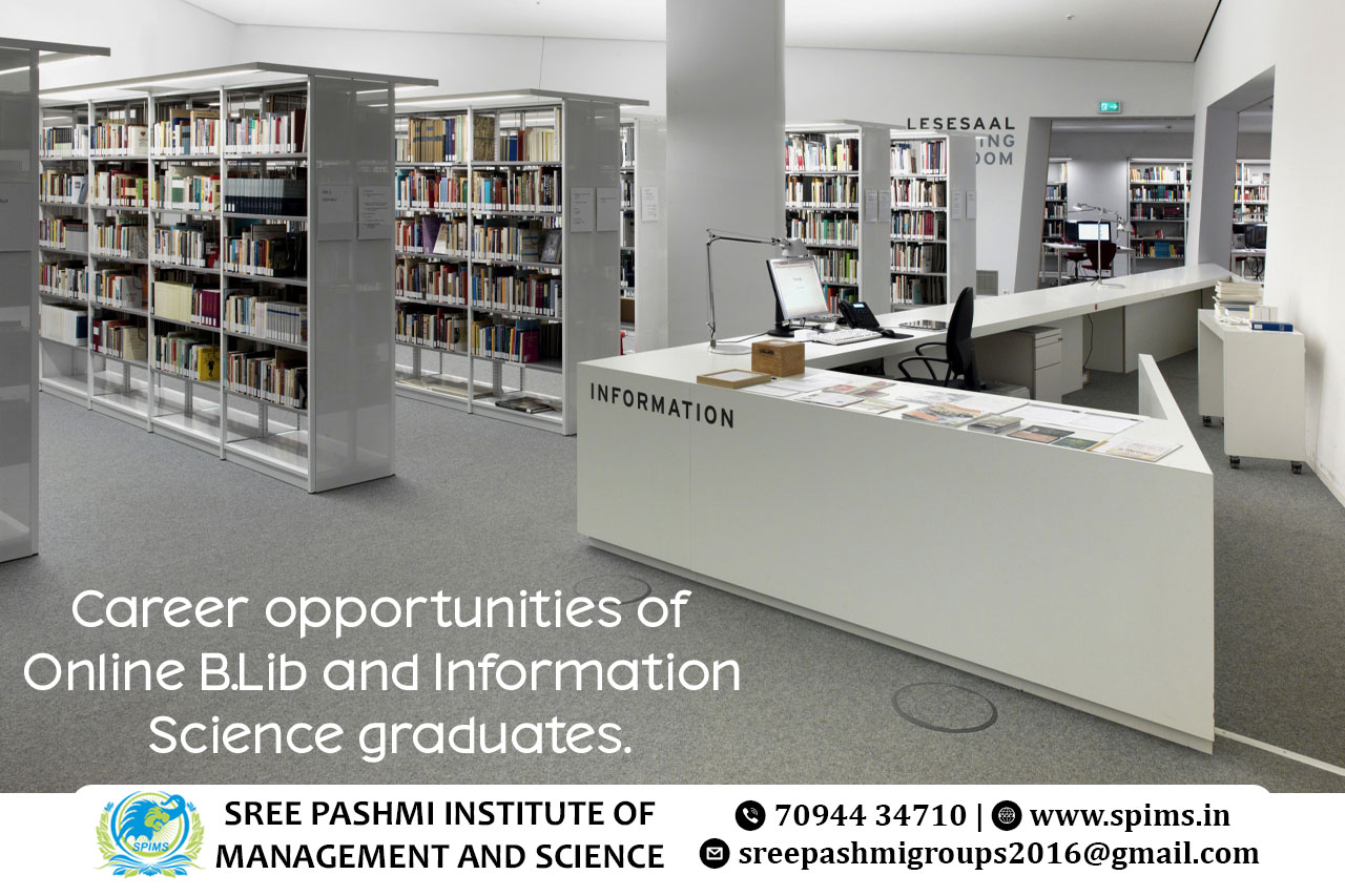Career opportunities for BLIS course graduate / BLIS course / Online BLIS course / BLIS course / BLIS course Degree / BLIS course Eligibility / Scope of BLIS course / Salary of BLIS course / Importance of studying BLIS course / Subject involved in BLIS course / Benefits of taking BLIS course / BLIS course in Online Education / BLIS course distance education / BLIS course in top University India / BLIS course in top University Tamilnadu / BLIS course in top University Coimbatore / BLIS course in online education in Coimbatore / BLIS course in online education in Tamilnadu / BLIS course in online education in India Graduates with an online B.Lib and Information Science degree have diverse career opportunities in the field of library and information management. They can work in various settings, including: → Librarian → Information Specialist → Archivist → Digital Asset Manager → Records Manager → Metadata Analyst Career Scope: → Researcher: Conduct information research and analysis for academic institutions, think tanks, or corporations. → Information Consultant: Offer expertise in organizing and accessing information to businesses and individuals. → Content Curator: Select and organize online content for websites and social media. → Library Administrator: Manage library operations, budgets, and staff. With the increasing digitization of information, these professionals play a crucial role in effectively managing and providing access to knowledge resources. Graduates can choose careers in diverse sectors, including education, healthcare, government, and corporate settings. Here at Sree Pashmi Institute of Management and Science, you can find all types of UG, PG, Diploma, PG Diploma, and certificate programs in the distance and online education modes. Enrolling in distance or online education courses via Sree Pashmi Institute of Management and Science, you can get UGC-approved degree certificates along with A+ grade mark sheets from your enrolled University. Also, we provide the students with exclusive online courses, live sessions, and other educational benefits.