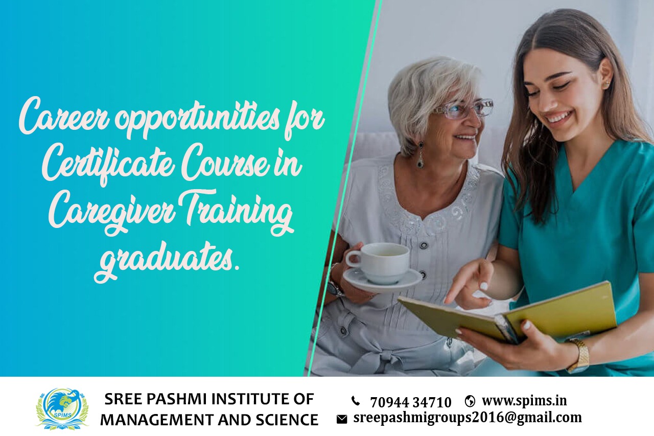 Career opportunities for Certificate course in Caregiver Training graduate/ Certificate course in Caregiver Training / Certificate course in Caregiver Training in Coimbatore / Certificate course in Caregiver Training Degree/ Certificate course in Caregiver Training Eligibility/ Scope of Certificate course in Caregiver Training / Salary of Certificate course in Caregiver Training / Importance of studying Certificate course in Caregiver Training/ Subject involved in Certificate course in Caregiver Training course/ Benefits of taking Certificate course in Caregiver Training / Certificate course in Caregiver Training in Online Education/ Certificate course in Caregiver Training distance education. Certificate Course in Caregiver Training graduates can find employment in a variety of settings, such as nursing homes, hospitals, hospices, and private homes. Caregivers provide assistance with activities of daily living, including bathing, dressing, and administering medications. Students of the Certificate Course in Caregiver Training course may also provide companionship and emotional support for their clients. Certificate Course in Caregiver Training students may be employed on a full-time or part-time basis and may work nights, weekends, and holidays. With experience, caregivers can advance to positions with increased responsibility and higher pay. Contact Sree Pashmi Institute of Management and Science to get enrolled for distance education degrees at the best-reputed university. This is the best leading institute for distance education in Coimbatore. All the study materials, E-materials, ID cards, Syllabus, Hall tickets, and Exam Time tables will be provided by us. You will get the proper guidance from the start till finishing your degree without any difficulties in between.