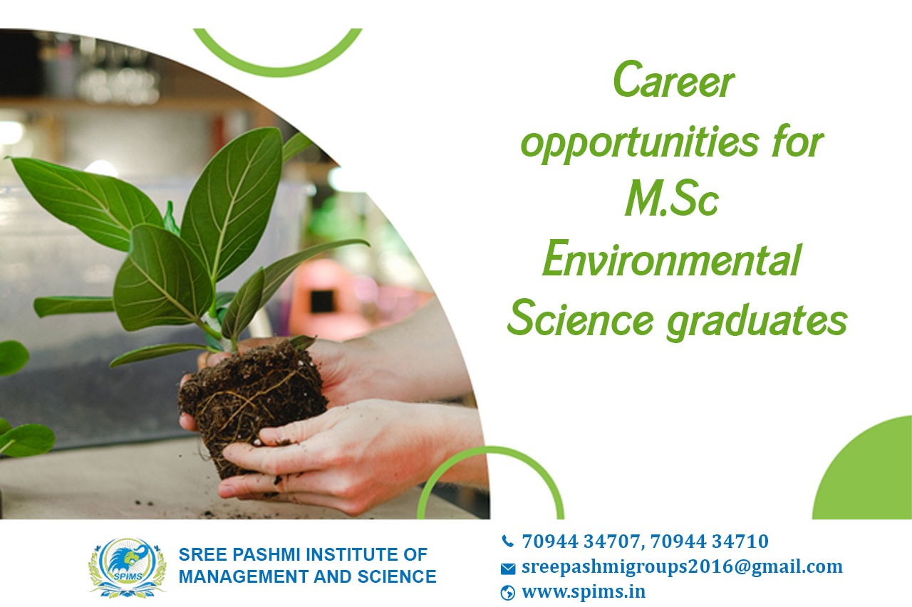 Career opportunities for M.Sc Environmental Science/ M.Sc Environmental Science What is it about/ Scope of M.Sc Environmental Science/ Salary of M.Sc Environmental Science/ Importance of studying M.Sc Environmental Science/ Benefits of taking M.Sc Environmental Science / Eligibility for pursuing M.Sc Environmental Science/ M.Sc Environmental Science details. M.Sc Environmental Science jobs are available for graduates in a wide variety of job roles and sectors. M.Sc Environmental Science scope is available for graduates in both the public and private sectors. Some jobs after my M.Sc Environmental Science degree includes Wildlife Filmmaker, Environment Photographer, and more. The scope of an M.Sc in Environmental Science for the professionals post-graduation is eligible to work in some of the finest and acknowledged organizations, ventures, and NGOs like World Economic Forum, and United Nations globally with a handsome salary. Some top scopes of M.Sc Environmental Science and career prospects in India are: → Wildlife Filmmaker → Environment Photographer → Environment Journalist → Journalist → Forest Carbon Specialist → Research Assistant The M.Sc in Environmental Science scope is available for students in both the public and private sectors. The different variety of M.Sc Environmental Science jobs is available for the graduates owing to the diversity of the education that the students receive. The M.Sc Environmental Science job salary is very competitive owing to the education and relevancy of the field. Listed below are some popular M.Sc Environmental Science job opportunities available to the students: → Director → Lecturer and Professor → Research Fellow → Senior Catastrophe → Risk Modeler → Senior Program Officer Sree Pashmi Institute of Management and Science is the leading distance education center in Coimbatore. Here you can find all UG, PG, Diploma, Certificate, and PG Diploma programs in distance and online mode of education. Especially, when you join Sree Pashmi Institute of Management and Science, you can receive 7-value added course such as management field, such as HR, Technology Management, Entrepreneurship, Finance and accounting, Digital marketing, Sales and Marketing, and Personal Branding for free.
