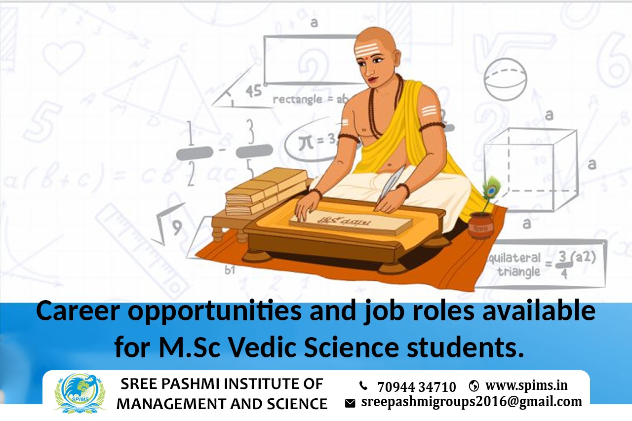 Career opportunities for M.Sc Vedic Science graduate/M.Sc Vedic Science /M.Sc Vedic Science course / M.Sc Vedic Science Degree/M.Sc Vedic Science Eligibility/ Scope of M.Sc Vedic Science / Salary of M.Sc Vedic Science / Importance of studying M.Sc Vedic Science/ Subject involved in M.Sc Vedic Science course/ Benefits of taking M.Sc Vedic Science / M.Sc Vedic Science in Online Education/ M.Sc Vedic Science distance education. Graduates with an M.Sc. in Vedic Science can pursue careers in research, education, health and wellness, environmental studies, and other related fields. Graduates with an M.Sc. in Vedic Science can pursue a variety of career opportunities in various fields. Some of the common career options for M.Sc. in Vedic Science graduates includes; Research: Graduates can work in research organizations studying various aspects of Vedic science, including health, agriculture, and the environment. Education: Graduates can work as teachers or professors in educational institutions teaching Vedic science subjects. Ayurvedic Practitioners: Graduates can work as Ayurvedic practitioners, offering treatments based on Vedic principles to patients. Yoga Instructors: Graduates can work as yoga instructors, teaching various yoga postures and breathing techniques based on Vedic science principles. Environmental Consultants: Graduates can work as environmental consultants, using Vedic Science principles to promote sustainable living and environmental conservation. Wellness Centers: Graduates can work in wellness centers or spas, providing treatments and therapies based on Vedic Science principles to clients. Management: Graduates can work in management roles in various industries, applying Vedic Science principles to improve organizational performance. Government Jobs: Graduates can also apply for government jobs, such as civil services and research positions, where Vedic science principles can be useful. Overall, an M.Sc. in Vedic Science opens up diverse career opportunities for graduates, especially in areas related to health, wellness, the environment, and spirituality. Are you still waiting to start distance learning? SPIMS in Coimbatore is the right choice for higher education. Here you can get amazing distance education programs from well-reputed universities in and around India. Moreover, you can get full coordination from the start to the end of your course.