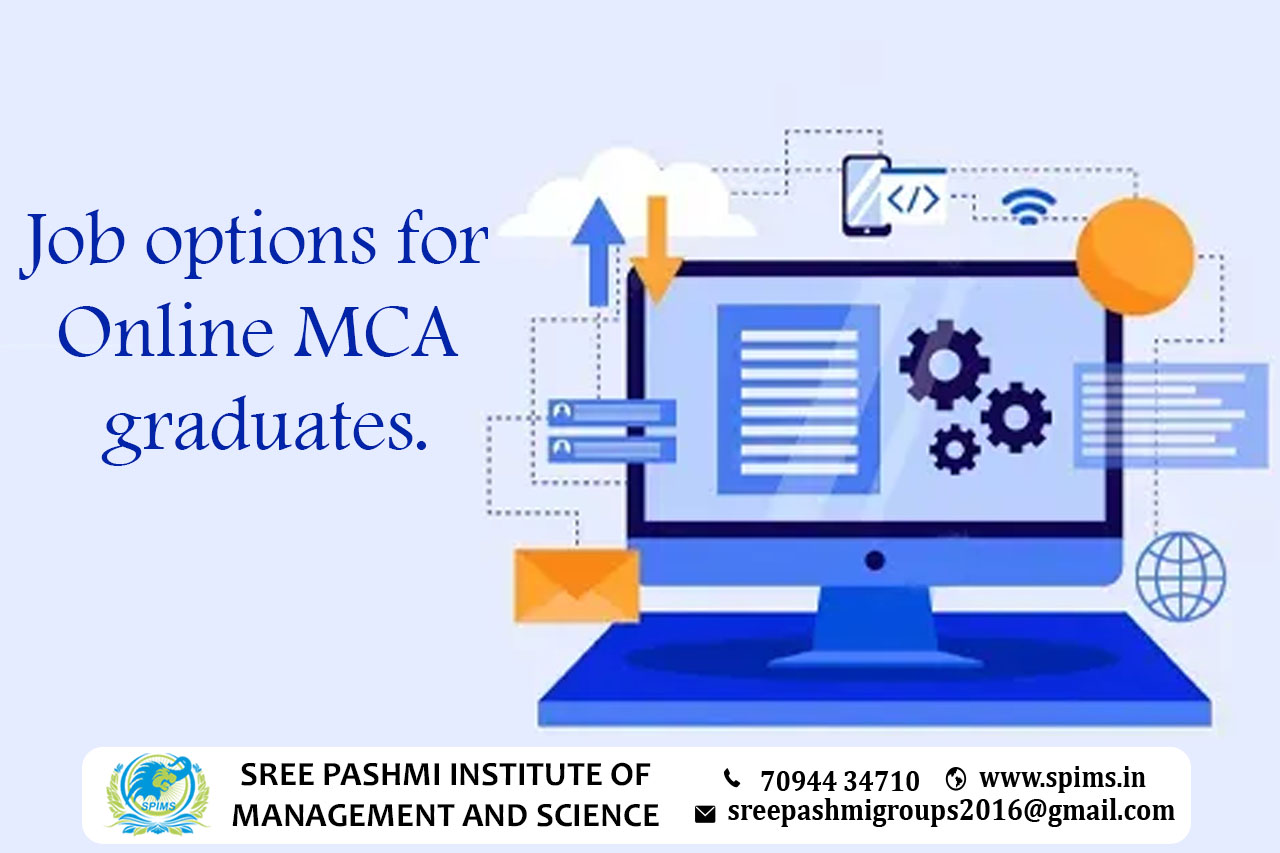 Career opportunities for MCA course graduate/ MCA course / MCA Degree/ MCA course Eligibility/ Scope of MCA course / Salary of MCA course / Importance of studying MCA course/ Subject involved in MCA course / Benefits of taking MCA course / MCA course in Online Education/ MCA course distance education / MCA course in top University India/ MCA course in top University Tamilnadu / MCA course in top University Coimbatore / MCA course in online education in Coimbatore/ MCA course in online education in Tamilnadu / MCA course in online education in India / MCA course in Manipal University. An Online Master of Computer Applications (MCA) course offers excellent career opportunities and wide scope in the field of information technology and computer applications. As technology continues to advance and play a crucial role in various industries, professionals with MCA qualifications are in high demand. Here are some of the career prospects and scope for individuals with an Online MCA degree: Information Security Analyst Cloud Computing Specialist Artificial Intelligence & Machine Learning E-commerce Specialist Big Data Analyst Entrepreneurship Teaching and Academics Research and Development Software developer/engineer Web Developer Mobile App Developer Database Administrator Systems Analyst IT Consultant Network Administrator Online MCA graduates have diverse career prospects, with opportunities available in IT companies, software development firms, multinational corporations, government organizations, educational institutions, and other sectors where information technology plays a crucial role. Additionally, with the growing emphasis on remote work and digital solutions, the demand for professionals with MCA qualifications is expected to remain high. This makes it a rewarding choice for those interested in a career in computer applications and technology. Contact Sree Pashmi Institute of Management and Science to get enrolled for distance education degrees in the best-reputed university. This is the best leading institute for distance education in Coimbatore. All the study materials, E-materials, ID cards, Syllabus, Hall tickets, and Exam Time tables will be provided by us. You will get the proper guidance from the start till finishing your degree without any difficulties in between.