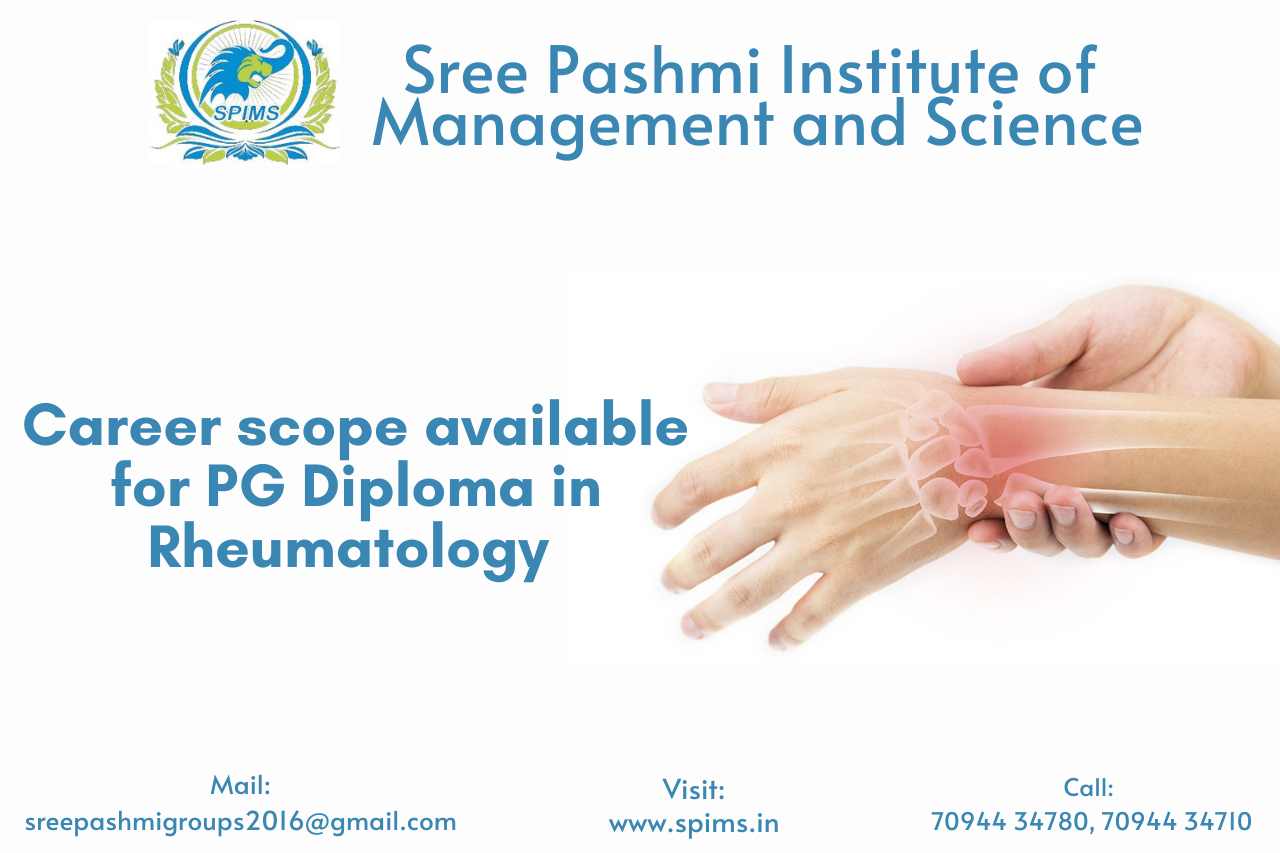 Career opportunities for PG Diploma in Rheumatology graduate/ PG Diploma in Rheumatology / PG Diploma in Rheumatology course /PG Diploma in Rheumatology Degree/ PG Diploma in Rheumatology Eligibility/ Scope of PG Diploma in Rheumatology / Salary PG Diploma in Rheumatology/ Importance of studying PG Diploma in Rheumatology / Subjects involved PG Diploma in Rheumatology course/ Benefits of taking PG Diploma in Rheumatology /PG Diploma in Rheumatology in Online Education/ PG Diploma in Rheumatology distance education. Upon completion of a PG Diploma in Rheumatology, graduates may be eligible for various job roles in the field of rheumatology. This is dependent on their prior qualifications and work experience. Some potential job roles include: Rheumatologists: They may work in hospitals, clinics, or private practices. They are responsible for evaluating patients, conducting diagnostic tests, prescribing medications, and managing treatment plans for patients with rheumatic conditions. Rheumatology Nurse: Rheumatology nurses are specialized registered nurses who provide care and support to patients with rheumatic diseases. They assist with patient assessments, medication administration, patient education, and treatment plan monitoring. Physiotherapist/Occupational Therapist: Physiotherapists and occupational therapists with specialized training in rheumatology can work in rehabilitation settings, providing therapies to manage pain, improve joint mobility, and enhance the functional abilities of patients with rheumatic diseases. Clinical Researcher: Graduates with a PG Diploma in Rheumatology may also work as clinical researchers, conducting research studies related to rheumatic diseases, developing evidence-based treatment protocols, and contributing to advancements in rheumatology. Are you still waiting to start your distance learning? SPIMS in Coimbatore is the best choice for your higher education. Here you can get amazing distance education programs from well-reputed universities in and around India. Moreover, you can get full coordination from the start to the end of your course.