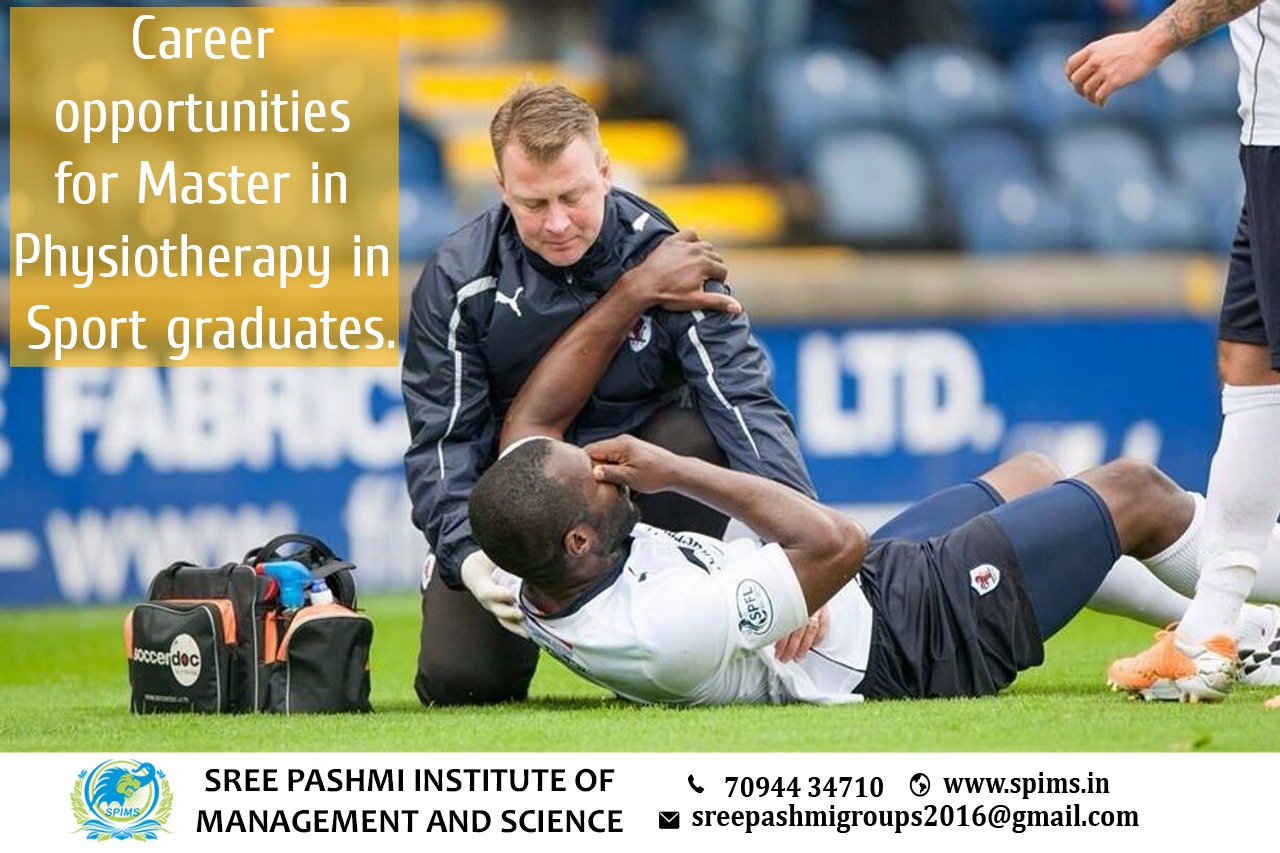 Career opportunities Master in Physiotherapy in Sport / Master in Physiotherapy in Sport course in Coimbatore/ Master in Physiotherapy in Sports Degree/Master in Physiotherapy in Sports Eligibility/ Scope of Master in Physiotherapy in Sport / Salary of Master in Physiotherapy in Sport / Importance of studying Master in Physiotherapy in Sport/ Subject involved in Master in Physiotherapy in Sport course/ Benefits of taking Master in Physiotherapy in Sport / Master in Physiotherapy in Sport in Online Education/ Career opportunities for Master in Physiotherapy in Sport graduate/Master in Physiotherapy in Sport distance education. The career scope for a Master's in Physiotherapy in Sports is very broad. Physiotherapists in this field can work in a variety of settings, including hospitals, sports medicine clinics, rehabilitation centers, schools, universities, and professional sports teams. Physiotherapists in sports typically work with athletes to help them improve performance, reduce the risk of injury, and rehabilitate from injuries. They may also develop and implement injury prevention programs, provide advice on conditioning and physical activity, and advise on the use of protective equipment. Physiotherapists in sports may also work with coaches and trainers to develop individualized training programs for athletes, and may even provide advice on nutrition. Sree Pashmi Institute of Management and Science is the leading distance education center in Coimbatore. Here you can find all UG, PG, Diploma, Certificate, and PG Diploma programs in the distance and online modes of education. Especially, when you join Sree Pashmi Institute of Management and Science, you can receive 7-value added courses such as the management field, such as HR, Technology Management, Entrepreneurship, Finance and accounting, Digital marketing, Sales and Marketing, and Personal Branding for free.