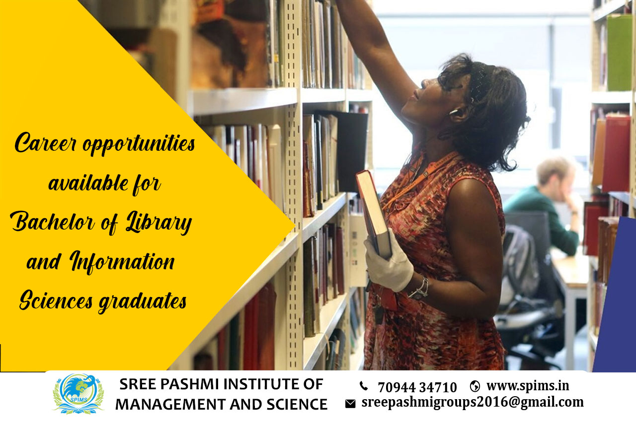 Career scope for Bachelor of Library and Information Sciences /Bachelor of Library and Information Sciences course / Bachelor of Library and Information Sciences Degree/ Bachelor of Library and Information Sciences Eligibility/ Scope of Bachelor of Library and Information Sciences / Salary of Bachelor of Library and Information Sciences/ Importance of studying Bachelor of Library and Information Sciences/ Subject involved in Bachelor of Library and Information Sciences course/ Benefits of taking Bachelor of Library and Information Sciences/ Bachelor of Library and Information Sciences in Online Education/ Career opportunities for Bachelor of Library and Information Sciences graduate/Bachelor of Library and Information Sciences distance education. The Bachelor of Library and Information Sciences degree provides graduates with the opportunity to work in various fields related to library and information sciences. The career opportunities include librarians, library technicians, archivists, records managers, information professionals, information scientists, and information technology professionals. They may also find employment in research and development, publishing, web development, and other related fields. With the ever-growing importance of information technology, graduates can look forward to a promising career. Bachelor of Library and Information Science graduate Job roles → Library Manager → Information Technology Manager → Information Science Researcher → Library Technician → Web Designer → Information Analyst → Library Systems Administrator → Archivist → Digital Content Manager → Information Services Librarian Sree Pashmi Institute of Management and Science is the leading distance education center in Coimbatore. Here you can find all UG, PG, Diploma, Certificate, and PG Diploma programs in the distance and online modes of education. Especially, when you join Sree Pashmi Institute of Management and Science, you can receive 7-value added courses such as management fields, such as HR, Technology Management, Entrepreneurship, Finance and accounting, Digital marketing, Sales and Marketing, and Personal Branding for free.