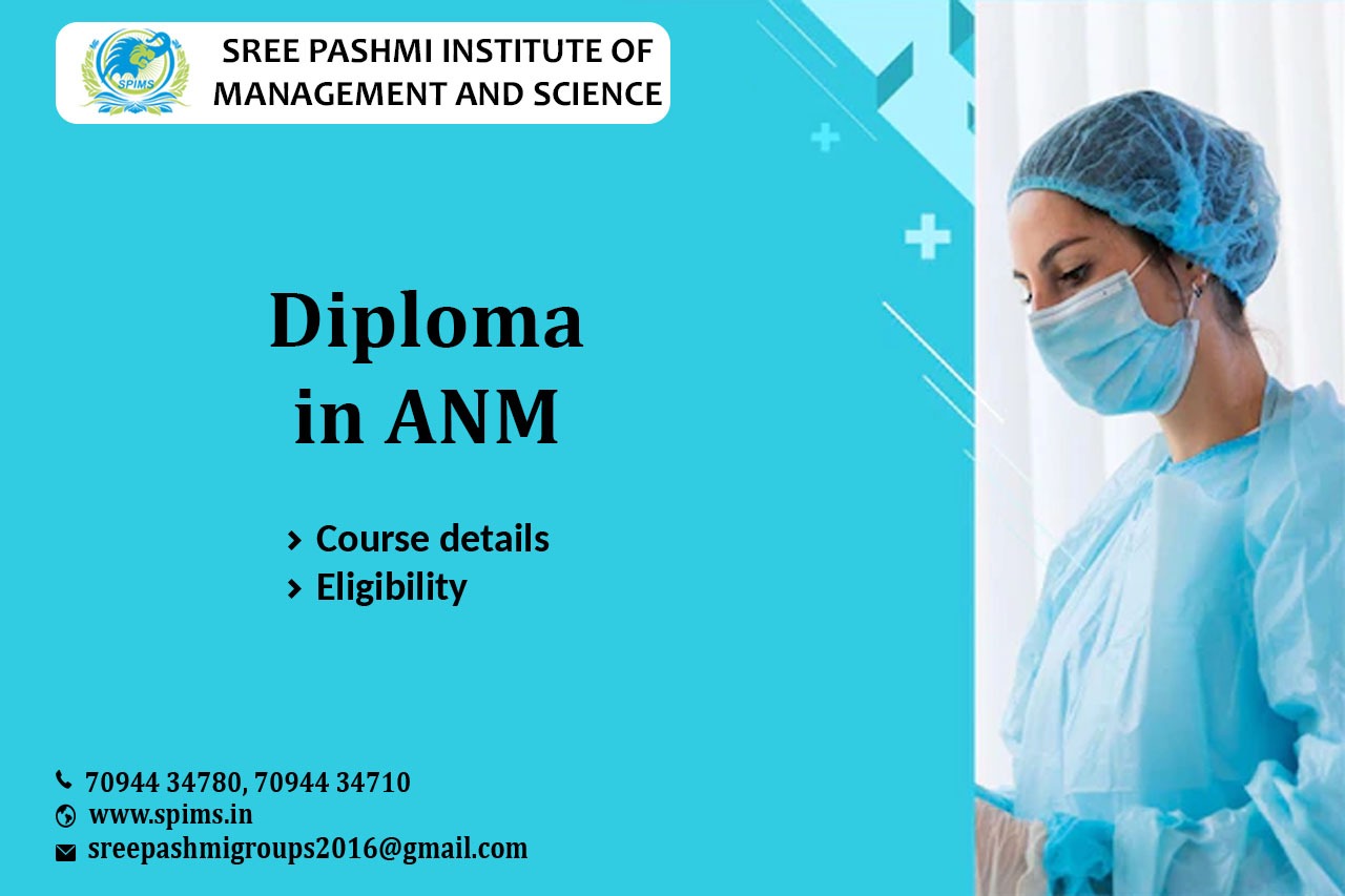 Diploma in ANM/ Diploma in ANM What is it about/ Scope of Diploma in ANM/ Salary of Diploma in ANM/ Importance of studying Diploma in ANM/ Diploma in ANM in distance education/ Benefits of taking Diploma in ANM/ Diploma in ANM distance education/ Eligibility for pursuing Diploma in ANM/ Career opportunities for Diploma in ANM graduate/Subject involved in Diploma in ANM course. Diploma in ANM expands as Auxiliary Nursing Midwifery. Hence, this Diploma in ANM is a two-year long diploma course that deals with It primarily deals with the healthcare sector. The Diploma in ANM course provides knowledge about setting up operation theater, taking care of various equipment, maintaining records, and also administering timely medication to patients. Upon graduation, students can start roles such as Nurse, Staff Nurse, Nursing Tutor, Healthcare Nurse, ICU Nurse, etc. For Diploma in ANM course admission, the students need to know the eligibility criteria and all the Diploma in ANM course details. The minimum educational requirements shall be the passing of the senior secondary school certificate examination 10+2 with a minimum of 50% marks from a recognized board. There is no age limit to applying for this course. The ones who perform well in the course, get international opportunities as well. The minimum salary of a candidate having these qualifications starts from INR 10, 000 and the salary might increase depending on the working experience of the candidate. Persons with a Diploma in ANM qualification also get the opportunity to teach others in various institutes. Here at Sree Pashmi Institute of Management and Science, you can find all types of UG, PG, Diploma, PG Diploma, and certificate programs in distance and online education modes. Enrolling in distance or online education courses via Sree Pashmi Institute of Management and Science, you can get UGC-approved degree certificates along with A+ grade mark sheets from your enrolled University. Also, we provide the students with exclusive online courses, live sessions, and other educational benefits.