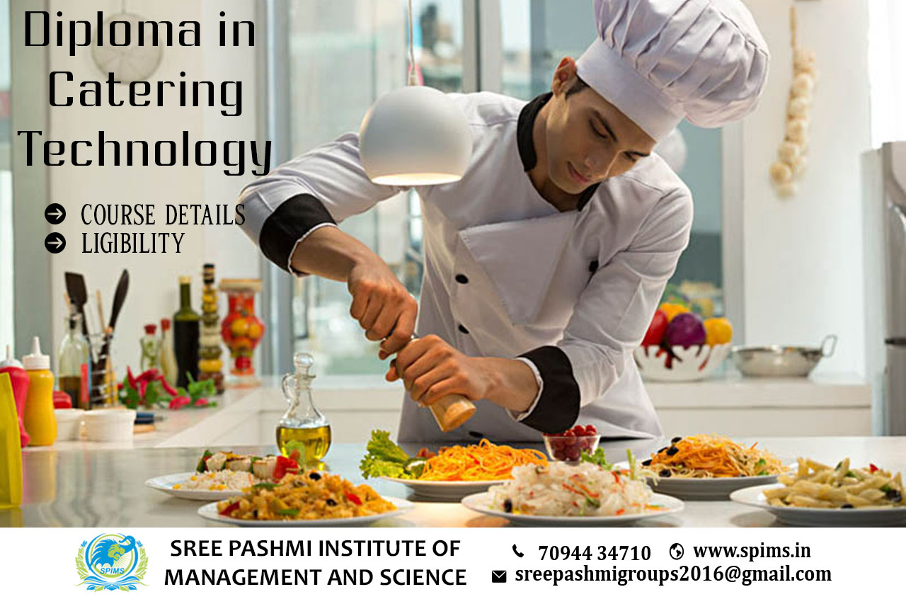 Diploma in Catering Technology / Diploma in Catering Technology course /Diploma in Catering Technology Degree/ Diploma in Catering Technology Eligibility/ Scope of Diploma in Catering Technology / Salary of Diploma in Catering Technology/ Importance of studying Diploma in Catering Technology/ Subject involved in Diploma in Catering Technology course/ Benefits of taking Diploma in Catering Technology/ Diploma in Catering Technology in Online Education/ Career opportunities for Diploma in Catering Technology graduate/Diploma in Catering Technology distance education / Diploma in Catering Technology in top University India/Diploma in Catering Technology in top University Tamilnadu / Diploma in Catering Technology in top University Coimbatore / Diploma in Catering Technology in online education in Coimbatore/Diploma in Catering Technology in online education in Tamilnadu /Diploma in Catering Technology in online education in India / Diploma in Catering Technology in capital university/Diploma in Catering Technology in Jain University / Diploma in Catering Technology in Kalinga University A Diploma in Catering Technology is a vocational course that provides specialized training and knowledge in the field of catering and food service management. The duration of a Diploma in Catering Technology course can vary, typically ranging from 1 year to 3 years, depending on the institute and the specific curriculum. The course curriculum covers various aspects of catering, food production, food and beverage service, culinary skills, food safety and hygiene, menu planning, hospitality management, and customer service. Eligibility for Diploma in Catering Technology → Students should have completed their 10th standard from a recognized board or educational institution. → The minimum age requirement is typically 16-18 years, although this can vary. → Some institutes may require students to have a certain level of proficiency in the English language, as it is crucial for effective communication in the hospitality industry. Contact Sree Pashmi Institute of Management and Science to get enrolled for distance education degrees in the best-reputed university. This is the best leading institute for distance education in Coimbatore. All the study materials, E-materials, ID cards, Syllabus, Hall tickets, and Exam Time tables will be provided by us. You will get the proper guidance from the start till finishing your degree without any difficulties in between.