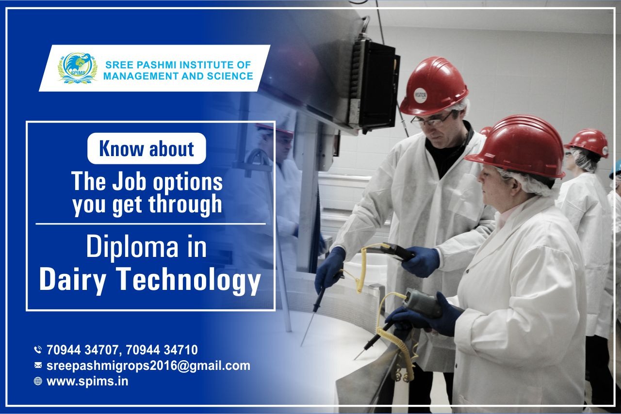 Diploma in Dairy Technology/ Diploma in Dairy Technology What is it about/ Scope of Diploma in Dairy Technology / Salary of Diploma in Dairy Technology/ Importance of studying Diploma in Dairy Technology/ Benefits of taking Diploma in Dairy Technology/ Diploma in Dairy Technology in distance education/Eligibility for pursuing Diploma in Dairy Technology. The Diploma in Dairy Technology is envisaged to create a competent technician-level human resource for the dairy industry. It intends to inculcate vocational and entrepreneurial skills to widen employment opportunities, particularly among rural youth and the disadvantaged section of society, as well as for self-employment. It aims to address the workforce requirement of the dairy and food processing industries and focus on upgrading the knowledge and skill of existing workers. The program caters to the educational requirements of dairy farmers, milk processors, skilled workers/ technicians in the dairy industry, personnel working in the State Dairy federations/ dairy departments of states and central Government/ educational institutions, entrepreneurs, and NGO functionaries/extension trainers/ rural educators. The proposed program is being developed with support from the Ministry of Food Processing Industries. For the pass outs of this program, the prospective job opportunities include secretary of dairy cooperative society, milk procurement supervisor, milk tester, dairy plant operator/technician/supervisor, product technician (ice cream/cheese/ butter/indigenous dairy products unit), dairy assistant, chilling center supervisor, quality control assistant, packaging assistant, marketing assistant, distribution assistant, retail supervisor, store assistant, extension assistant, trainer, and self entrepreneur as milk contractor, transporter, dairy products manufacture (indigenous and western), owner of milk parlor/milk booth/ ice cream parlor, wholesale distributor, retailer and exporter of milk and milk products. Here at Sree Pashmi Institute of Management and Science, you can find all types of UG, PG, Diploma, PG Diploma, and certificate programs in distance and online education modes. Enrolling in distance or online education courses via Sree Pashmi Institute of Management and Science, you can get UGC-approved degree certificates along with A+ grade mark sheets from your enrolled University. Also, we provide the students with exclusive online courses, live sessions, and other educational benefits.