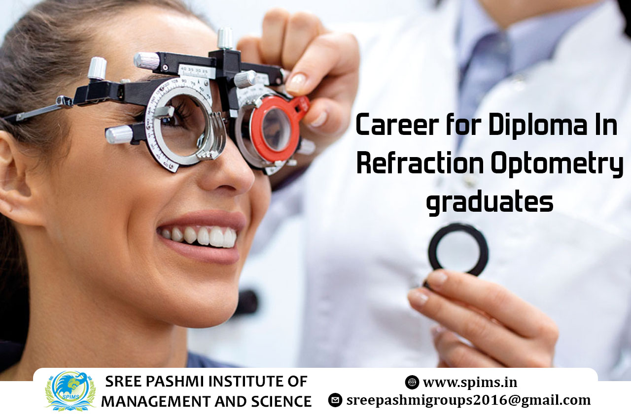 Diploma In Refraction Optometry / Diploma In Refraction Optometry course / Diploma In Refraction Optometry Degree/ Diploma In Refraction Optometry Eligibility/ Scope of Diploma In Refraction Optometry/ Salary of Diploma In Refraction Optometry/ Importance of studying Diploma In Refraction Optometry/ Subject involved in Diploma In Refraction Optometry course/ Benefits of taking Diploma In Refraction Optometry/ Diploma In Refraction Optometry in Online Education/ Career opportunities for Diploma In Refraction Optometry graduate/Diploma In Refraction Optometry in distance education / Diploma In Refraction Optometry in top University India/Diploma In Refraction Optometry Tamilnadu / Diploma In Refraction Optometry in top University Coimbatore/ Diploma In Refraction Optometry in online education in Coimbatore/ Higher studies after Diploma In Refraction Optometry course/Diploma In Refraction Optometry in online education in Tamilnadu / Diploma In Refraction Optometry in online education in India/ Advantages of Diploma In Refraction Optometry/ Significance of Diploma In Refraction Optometry. Earning a Diploma in Refraction Optometry equips you with the skills to be a crucial pillar in the world of eye health. But your career options extend far beyond the clinical setting. Clinical Powerhouse: Practicing Optometrist: Set up your own practice or join established clinics, hospitals, or community health centers. Perform refractions, diagnose common eye conditions, prescribe corrective lenses, and provide primary eye care. Hospital Optometrist: Collaborate with ophthalmologists, assist in pre- and post-operative care for patients undergoing eye surgeries, and contribute to specialized procedures like vision therapy. Community Outreach Specialist: Partner with NGOs and healthcare initiatives to provide vital eye care in underserved communities, promote preventative measures, and raise awareness about eye health. Beyond Clinical Walls: Research and Development: Join research teams focused on developing new diagnostic tools, treatment options, and technologies for eye diseases. Contribute to groundbreaking advancements in the field and ensure cutting-edge care for future generations. Optometric Educator: Share your knowledge and passion by teaching at optometry schools or training institutes. Shape future generations of eye care professionals and make a lasting impact on the field. Optical Industry Liaison: Bridge the gap between optometrists and lens manufacturers, providing valuable insights into patient needs and market trends. Contribute to the development of innovative lens technologies and ensure optimal performance for patients. Entrepreneurial Spirit: Start your own optical retail business: Cater to diverse patient needs by dispensing glasses, contact lenses, and other optical accessories. Build a personalized and trusted relationship with your clientele. Develop specialized eye care products or services: Identify unmet needs in the market and create innovative solutions. Launch your own venture focused on niche areas like low vision aids, children's eye care, or telehealth optometry services. Leverage your expertise by offering consulting services to clinics, hospitals, or optical businesses. Conduct training workshops for healthcare professionals or educate patient communities on eye health awareness. Are you still waiting to start your Online learning? Sree Pashmi Institute of Management and Science in Coimbatore is the best choice for your higher education. Here you can get amazing distance education programs from well-reputed universities in and around India. Moreover, you can get full coordination from the start to the end of your course. So don’t wait to enroll in a distance education course at Sree Pashmi Institute of Management and Science and gain the benefits of quality education.