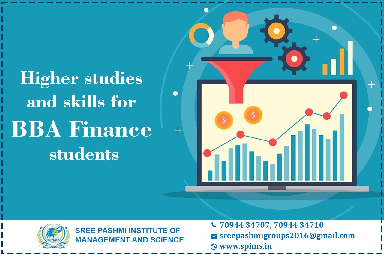 Higher studies after BBA Finance/ BBA Finance/ BBA Finance What is it about/ Scope of BBA Finance/ Salary of BBA Finance/ studying BBA Finance/ Benefits of taking BBA Finance/ Eligibility for pursuing Financed/ Career opportunities for BBA Finance/BBA Finance course details. BBA Finance is a three-year undergraduate program that deals with budgeting, finance, and data analytics. Graduates of this program have a wide range of work opportunities in the financial industry. BBA Finance jobs have many potentials, and work duties include overseeing accounts and businesses' budgets to meet the company's financial goals. Graduates have the opportunity to work in various fields, including investment banking, consultancy, merchant banking, and private banking. Some of the courses that students can pursue include: -MBA. -PGDM. -Bachelor of Law (LLB) -Chartered Accountant (CA) -PG Diploma in Banking. -Master of Management Studies (MMS) -Masters in Finance Management. -PG Certification in Data Science. Students who choose BBA Finance will hire auditors to help them deal with and settle financial crises. Following undergraduate studies, one may pursue various MBA programs, such as MBA Finance, or other specialization courses, such as the financial analyst certification program, chartered accountancy, and finance and investment certification. Are you still waiting to start your distance learning? Sree Pashmi Institute of Management and Science in Coimbatore is the best choice for your higher education. Here you can get amazing distance education programs from well-reputed universities in and around India. Moreover, you can get full coordination from the start to the end of your course. So don’t wait to enroll in a distance education course at Sree Pashmi Institute of Management and Science and gain the benefits of quality education.
