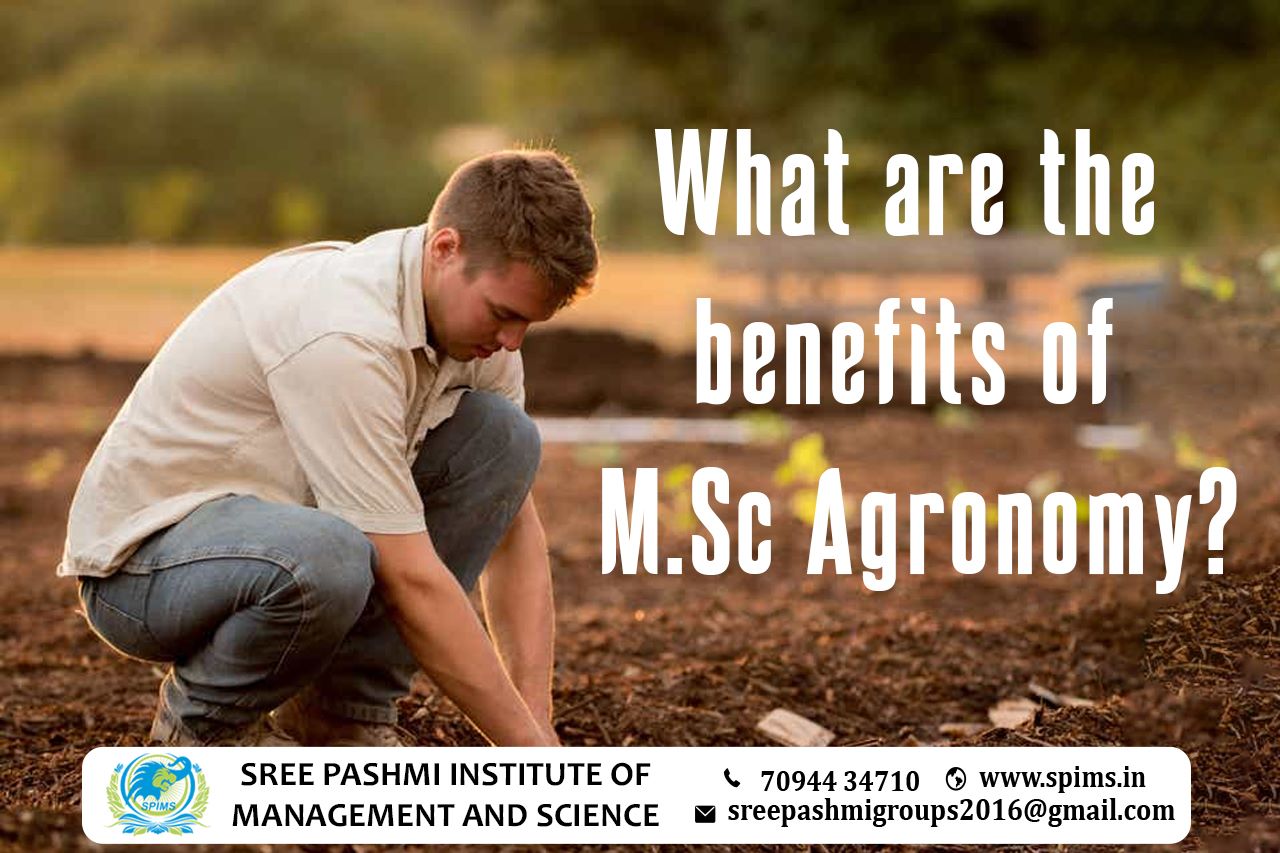 M.Sc Agronomy Course/M.Sc Agronomy Course in Coimbatore/M.Sc Agronomy Course Degree/M.Sc Agronomy Course Eligibility/ Scope of M.Sc Argonomy Course / Salary of M.Sc Argonomy Course/ Importance of studying M.Sc Argonomy Course/Subject involved in M.Sc Argonomy Course/ Benefits of taking M.Sc Argonomy Course/M.Sc Agronomy Course in Online Education/ Career opportunities for M.Sc Agronomy Course graduate/M.Sc Agronomy Course distance education/course in top University India/M.Sc Agronomy Course in top University Tamilnadu /M.Sc Agronomy Course in top University Coimbatore /M.Sc Agronomy Course in online education in Coimbatore/M.Sc Agronomy Course in online education in Tamilnadu /M.Sc Agronomy Course in online education in India /M.Sc Agronomy Course in Jain University Pursuing M.Sc. Agronomy can provide you with a wide range of benefits, including - The demand for professionals in Agronomy is increasing day by day. With the growing population and the need for sustainable agriculture, agronomists are in high demand. According to the Bureau of Labor Statistics, employment in agricultural and food science is projected to grow 6% from 2019 to 2029, faster than the average for all occupations. During an M.Sc. Agronomy program, you will develop skills such as critical thinking, problem-solving, data analysis, research, and communication skills. These skills can be useful not only in agronomy but also in various other fields. As an Agronomist, you will contribute to society by ensuring food security and sustainable agriculture. You will play a crucial role in improving crop yields, developing new varieties of crops, and implementing sustainable farming practices. An M.Sc. Agronomy degree can provide you with a fulfilling career, a high salary, and a chance to contribute to society by ensuring food security and sustainable agriculture. Contact Sree Pashmi Institute of Management and Science to get enrolled in distance education degrees at the best-reputed university. This is the best leading institute for distance education in Coimbatore. All the study materials, E-materials, ID cards, Syllabus, Hall tickets, and Exam Time tables will be provided by us. You will get the proper guidance from the start till finishing your degree without any difficulties in between.
