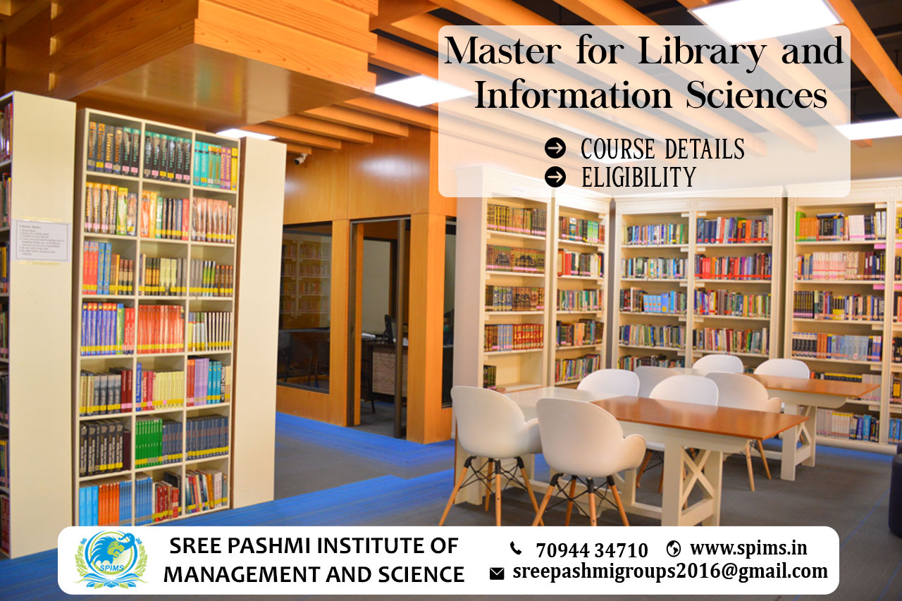Master for Library and Information Sciences / Master for Library and Information Sciences course / Master for Library and Information Sciences Degree/ Master for Library and Information Sciences Eligibility/ Scope of Master for Library and Information Sciences / Salary ofMaster for Library and Information Sciences/ Importance of studying Master for Library and Information Sciences/ Subject involved in Master for Library and Information Sciencescourse/ Benefits of taking Master for Library and Information Sciences/ Master for Library and Information Sciences in Online Education/ Career opportunities for Master for Library and Information Sciences graduate/Master for Library and Information Sciences distance education. The Master of Library and Information Science (MLIS) is a professional degree that prepares individuals to become librarians, archivists, and other knowledge and information professionals. The program provides students with the necessary skills to successfully use, manage, and share information in libraries and other information organizations. Students will gain knowledge in areas such as information systems, data management, and digital literacy. The Master of Library and Information Science program also provides students with a comprehensive understanding of the ethical and legal issues associated with the use of information. Additionally, the MLIS program provides students with a foundation in research methods and library sciences, which can be applied to a wide range of information-based organizations. Eligibility for Master of Library and Information Science: To be eligible for an MLIS program, potential students should have a bachelor's degree in any field. Some programs may require that students have some prior work experience in library or information science. Here at Sree Pashmi Institute of Management and Science, you can find all types of UG, PG, Diploma, PG Diploma, and certificate programs in the distance and online education modes. Enrolling in distance or online education courses via Sree Pashmi Institute of Management and Science, you can get UGC-approved degree certificates along with A+ grade mark sheets from your enrolled University. Also, we provide the students with exclusive online courses, live sessions, and other educational benefits.