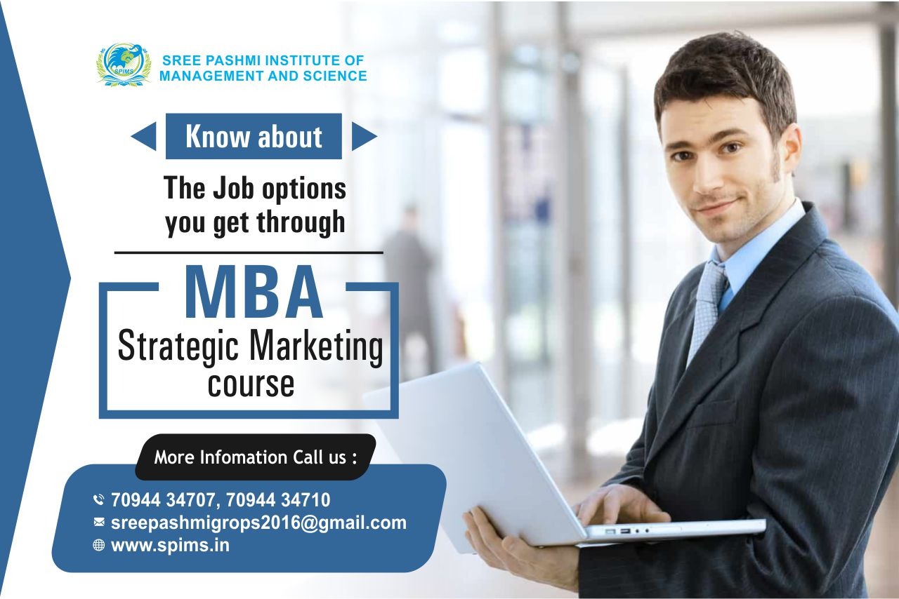 MBA Strategic Marketing/ MBA Strategic Marketing What is it about/ Scope of MBA Strategic Marketing / Salary of MBA Strategic Marketing/ Importance of studying MBA Strategic Marketing/ Benefits of taking MBA Strategic Marketing/ MBA Strategic Marketing in distance education/Eligibility for pursuing MBA Strategic Marketing. The strategic marketing MBA is designed for professionals who seek to expand their knowledge of modern best practices in marketing and emerging tactical areas, while strengthening their data-informed decision-making and management abilities. The program offers experienced marketers the opportunity to reposition themselves by preparing for career advancement in the age of big data and digital-first strategies. It will also support professionals interested in making a career pivot to a marketing, sales, product management, or marketing communications role. The Strategic Marketing Programme is designed for executives with, or about to take up, marketing responsibilities and for those executives outside the marketing discipline whose role interacts with this function. Job titles of master’s-prepared marketing professionals include: → Brand Manager → Digital Marketing Specialist → Marketing Analyst → Marketing Manager → Product Marketing Manager → Sales Manager → Social Media Manager → Senior functional manager → Functional manager → Specialist new to marketing. After completing MBA Strategic Marketing course, students can be employed as Brand Managers, Account Managers, Research Managers, Sales Managers, Business Development Managers, Marketing Analytics, Monetization Manager, and SEO Manager. Moreover, MBA Strategic Marketing course jobs will enhance leadership qualities and perform a key role in the company. Contact Sree Pashmi Institute of Management and Science to get enrolled for distance education degrees in the best-reputed university. This is the best leading institute for distance education in Coimbatore. All the study materials, E-materials, ID cards, Syllabus, Hall tickets, and Exam Time tables will be provided by us. You will get the proper guidance from the start till finishing your degree without any difficulties in between.