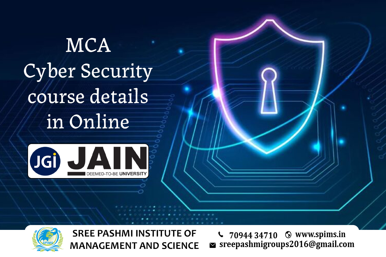 MCA Cyber Security / MCA Cyber Security course / MCA Cyber SecurityDegree/ MCA Cyber Security Eligibility/ Scope of MCA Cyber Security / Salary of MCA Cyber Security / Importance of studying MCA Cyber Security/ Subject involved in MCA Cyber Security course/ Benefits of taking MCA Cyber Security / MCA Cyber Security in Online Education/ Career opportunities forMCA Cyber Security graduate/ MCA Cyber Security distance education / MCA Cyber Security in top University india/MCA Cyber Security in top University Tamilnadu / MCA Cyber Security in top University Coimbatore / MCA Cyber Security in online education in Coimbatore / MCA Cyber Security in online education in Tamilnadu / MCA Cyber Security in online education in India / MCA Cyber Security in Jain University. Online MCA in Cyber Security at Jain University is a specialized postgraduate degree program that focuses on cybersecurity expertise. The program equips students with the knowledge and skills to protect computer systems, networks, and data from cyber threats and attacks. Candidates should have a bachelor's degree in Computer Science, Information Technology, or a related field from a recognized university. Ideally, the degree should last at least three years. Typically, a minimum aggregate score of 50% or above in the qualifying examination is required. Many institutions require candidates to have studied mathematics at the 10th, +2 level or during graduation. MCA Cyber Security programs last three years, divided into six semesters. The MCA in Cyber Security curriculum covers various topics related to cybersecurity, network security, information security, and related areas. The core subjects covered in the program include: → Fundamentals of Cyber Security → Network Security → Cryptography and Secure Communications → Cyber Threats and Attacks → Secure Software Development → Web Security → Incident Response and Management → Digital Forensics → Security Risk Management → Ethical Hacking and penetration → Cyber Law and Regulations → Mobile and Wireless Security → Cloud Security → Secure System Administration → Network Defense and Intrusion Detection Here at Sree Pashmi Institute of Management and Science, you can find all types of UG, PG, Diploma, PG Diploma, and certificate programs in the distance and online education modes. Enrolling in distance or online education courses via Sree Pashmi Institute of Management and Science, you can get UGC-approved degree certificates along with A+ grade mark sheets from your enrolled University. Also, we provide the students with exclusive online courses, live sessions, and other educational benefits.