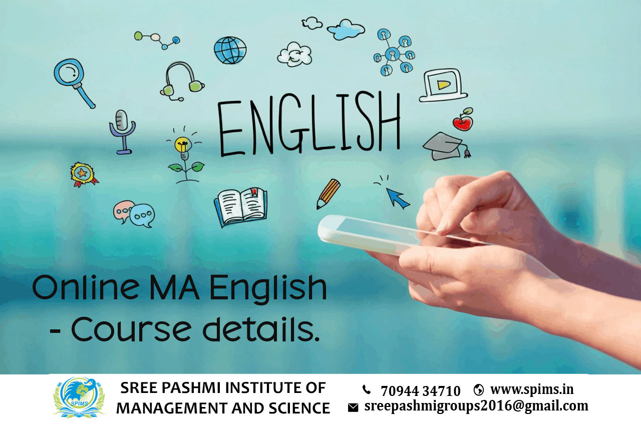 Online MA English / Online MA English course / Online MA English Degree/ Online MA English Eligibility/ Scope of Online MA English / Salary of MCA Cyber Security / Importance of studying Online MA English/ Subject involved in Online MA English / Benefits of taking Online MA English / Online MA English in Online Education/ Career opportunities for Online MA English graduate/ Online MA English distance education / Online MA English in top University India/ Online MA English in top University Tamilnadu / Online MA English in top University Coimbatore / Online MA English in online education in Coimbatore / Online MA English in online education in Tamilnadu / Online MA English in online education in India / Online MA English course. An Online Master of Arts in English program offers a comprehensive study of literature, language, and critical thinking in the field of English. These courses form the foundation of the program and cover areas like literary theory, British and American literature, and critical analysis of literary texts. Students often have the flexibility to choose elective courses based on their interests and career goals. These may include specialized topics such as postcolonial literature, contemporary fiction, or Shakespearean studies. Online MA programs usually include courses that focus on research methods and academic writing skills. Students learn how to conduct literary research, write research papers, and present their findings effectively. It include courses in linguistics, exploring the English language's structure, evolution, and its role in literature. Courses may address current issues in English literature and literary studies, including topics related to diversity, gender, and cultural studies.Most online MA in English programs take two years to complete.Upon completion of the program, graduates are prepared for a wide range of career opportunities, including teaching, publishing, writing, research, and various roles in the fields of communications, marketing, and public relations. Additionally, an MA in English can serve as a stepping stone to further academic pursuits, such as a Ph.D. in English or related disciplines. Here at Sree Pashmi Institute of Management and Science, you can find all types of UG, PG, Diploma, PG Diploma, and certificate programs in the distance and online education modes. Enrolling in distance or online education courses via Sree Pashmi Institute of Management and Science, you can get UGC-approved degree certificates along with A+ grade mark sheets from your enrolled University. Also, we provide the students with exclusive online courses, live sessions, and other educational benefits.