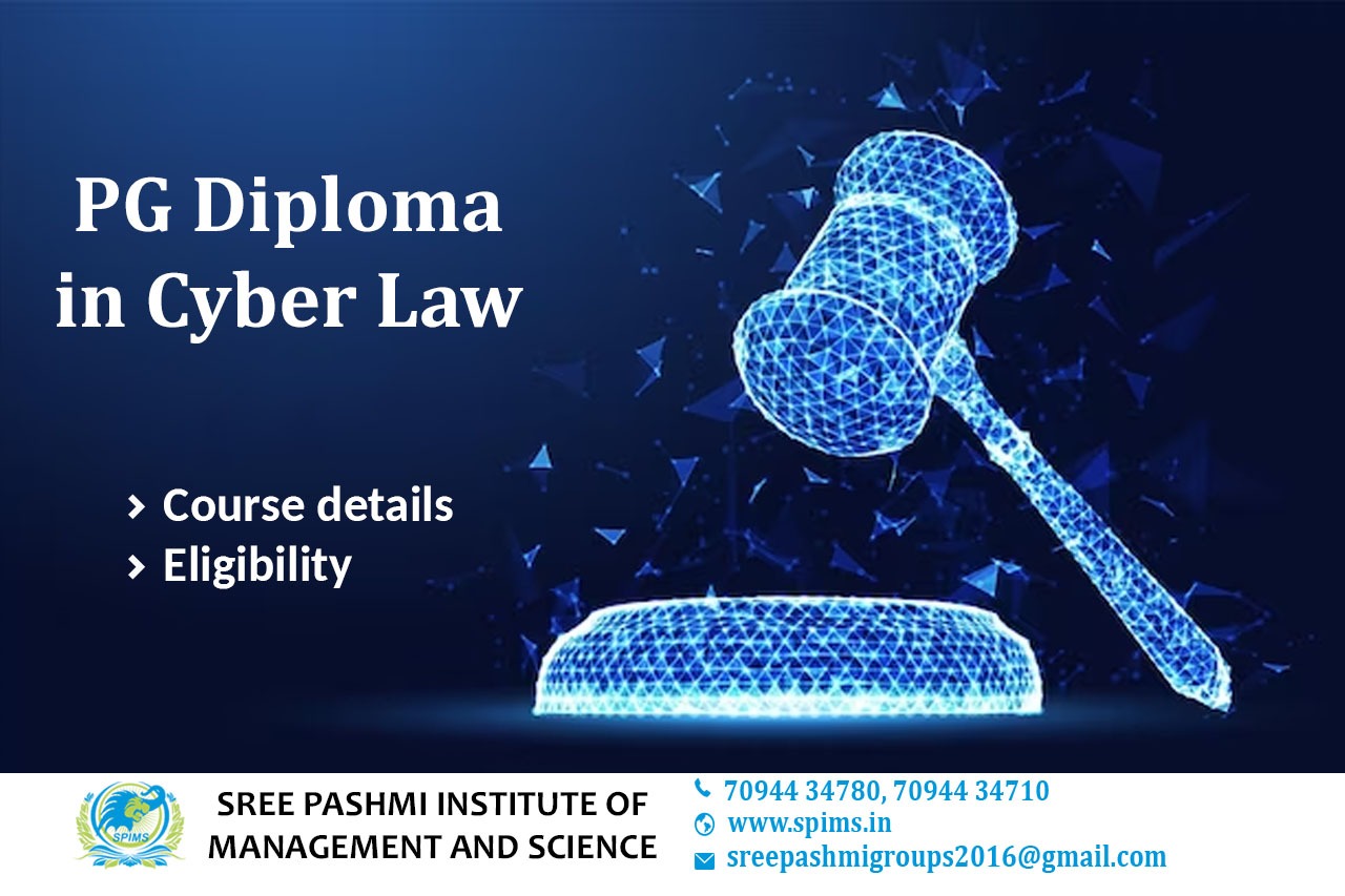 PG Diploma in Cyber Law / PG Diploma in Cyber Law What is it about/ Scope of PG Diploma in Cyber Law / Salary of PG Diploma in Cyber Law / Importance of studying PG Diploma in Cyber Law/ PG Diploma in Cyber Law distance education/ Benefits of taking PG Diploma in Cyber Law/ PG Diploma in Cyber Law in distance education/ Eligibility for pursuing PG Diploma in Cyber Law/ Career opportunities for PG Diploma in Cyber Law graduate/Subject involved in PG Diploma in Cyber Law course. PG Diploma in Cyber Law is a 1 to 2-year Post Graduate Diploma for post-graduates. PG Diploma in Cyber Law is essentially involving issues related to the internet, communication technology, technological and electronic elements including hardware, software, computer and information systems, and their resolution. The job profiles are Cyber Lawyer, Legal Advisor, Cyber Assistant, Cyber Consultant, Research Assistant, etc. The average annual salaries for freshers are INR 2 lakhs to INR 10 lakhs. It depends on the candidate's experience and skills. The eligibility criterion for the PG Diploma in Cyber Law course is students have to clear Graduation or equivalent with a minimum of 50% marks from a recognized board. 5% moderation for the reserved category students. Students must be from a recognized institute. The PG Diploma in Cyber Law students must have to clear the Graduation. With a grounding in international and Indian law relating to cyber law and forensics, graduates from this program can play roles in policymaking, law enforcement, and the development of business and social strategies that leverage the capabilities of information technology in general and the Internet in particular. Here at Sree Pashmi Institute of Management and Science, you can find all types of UG, PG, Diploma, PG Diploma, and certificate programs in the distance and online education modes. Enrolling in distance or online education courses via Sree Pashmi Institute of Management and Science, you can get UGC-approved degree certificates along with A+ grade mark sheets from your enrolled University. Also, we provide the students with exclusive online courses, live sessions, and other educational benefits.