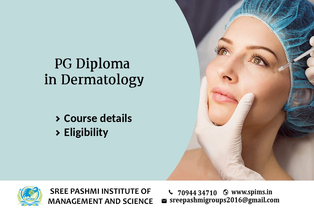 PG Diploma in Dermatology /PG Diploma in Dermatology course /PG Diploma in Dermatology Degree/ PG Diploma in Dermatology Eligibility/ Scope of PG Diploma in Dermatology/ Salary of PG Diploma in Dermatology/ Importance of studying Diploma in Dermatology/ Subjects involved in PG Diploma in Dermatology course/ Benefits of taking PG Diploma in Dermatology / PG Diploma in Dermatology in Online Education/ Career opportunities for PG Diploma in Dermatology graduate/PG Diploma in Dermatology distance education. The Postgraduate Diploma in Dermatology is a one-year full-time postgraduate course designed to equip medical professionals with advanced skills in dermatology. The course covers topics such as skin anatomy, physiology, pathology, clinical dermatology, dermatological therapeutics, dermatosurgery, dermatological imaging, and research methodology. The diploma is intended for a wide range of healthcare professionals, including doctors, nurses, and allied health professionals. It is suitable for those looking to gain specialist knowledge of dermatology, as well as those who want to pursue a career in the field. The eligibility criteria for a PG Diploma in Dermatology include a medical degree such as MBBS/MD/MS/BDS/MDS or equivalent from a recognized university. Students are also required to have one year's experience in the field of Dermatology to be eligible for the course. Here at Sree Pashmi Institute of Management and Science, you can find all types of UG, PG, Diploma, PG Diploma, and certificate programs in the distance and online education modes. Enrolling in distance or online education courses via Sree Pashmi Institute of Management and Science, you can get UGC-approved degree certificates along with A+ grade mark sheets from your enrolled university. Also, we provide the students with exclusive online courses, live sessions, and other educational benefits.