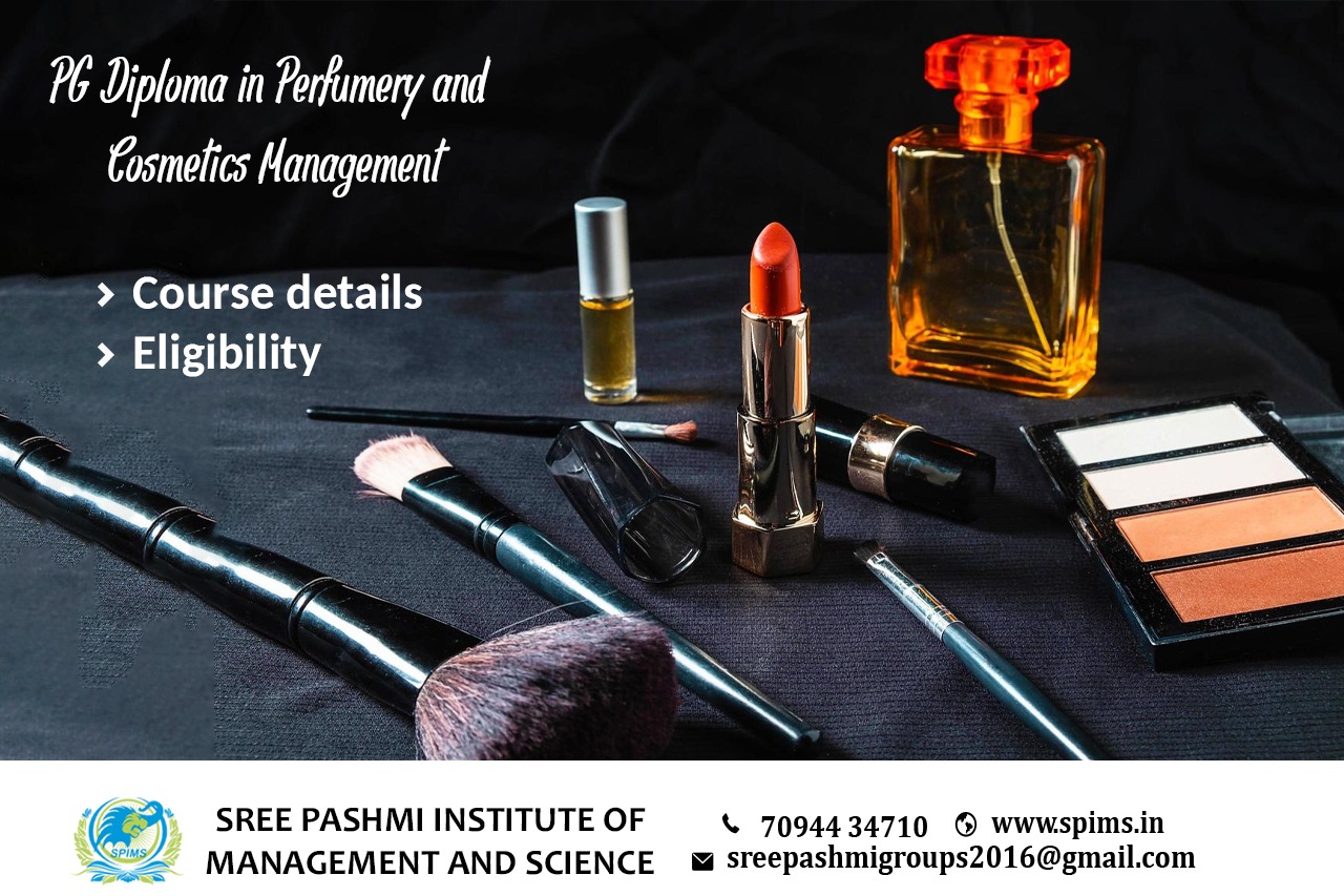 PG Diploma in Perfumery and Cosmetics Management- Course details and Eligibility/PG Diploma in Perfumery and Cosmetics Management / PG Diploma in Perfumery and Cosmetics Management course / PG Diploma in Perfumery and Cosmetics Management Degree/ PG Diploma in Perfumery and Cosmetics Management Eligibility/ Scope of PG Diploma in Perfumery and Cosmetics Management / Salary of PG Diploma in Perfumery and Cosmetics Management/ Importance of studying PG Diploma in Perfumery and Cosmetics Management / Subject involved in PG Diploma in Perfumery and Cosmetics Management course/ Benefits of taking PG Diploma in Perfumery and Cosmetics Management / PG Diploma in Perfumery and Cosmetics Management in Online Education/ Career opportunities for PG Diploma in Perfumery and Cosmetics Management graduate/PG Diploma in Perfumery and Cosmetics Management distance education. The PG Diploma in Perfumery and Cosmetics Management is a one-year, full-time course offered by the Institute of Beauty and Wellness (IBW). This diploma is designed to provide students with the skills and knowledge necessary to become a professional in the perfumery and cosmetics industry. The course covers the fundamentals of the Perfumery and Cosmetics sector, including product development, market trends and regulations, raw material sourcing, and packaging. The course also covers topics such as aromatherapy, perfumery, cosmetic formulation, fragrance blending, and regulatory compliance. It is designed to provide students with the knowledge and skills necessary to pursue careers in the Perfumery and Cosmetics industry. Eligibility for PG Diploma in Perfumery and Cosmetics Management are To be eligible for PG Diploma in Perfumery and Cosmetics Management course, an applicant must have a bachelor's degree in Chemistry, Biology, Biochemistry, or a related field from a recognized university or institute. The applicants must also have a minimum of two years of experience in the cosmetics and perfumery industry or a related field. Here at Sree Pashmi Institute of Management and Science, you can find all types of UG, PG, Diploma, PG Diploma, and certificate programs in the distance and online education modes. Enrolling in distance or online education courses via Sree Pashmi Institute of Management and Science, you can get UGC-approved degree certificates along with A+ grade mark sheets from your enrolled University. Also, we provide the students with exclusive online courses, live sessions, and other educational benefits.