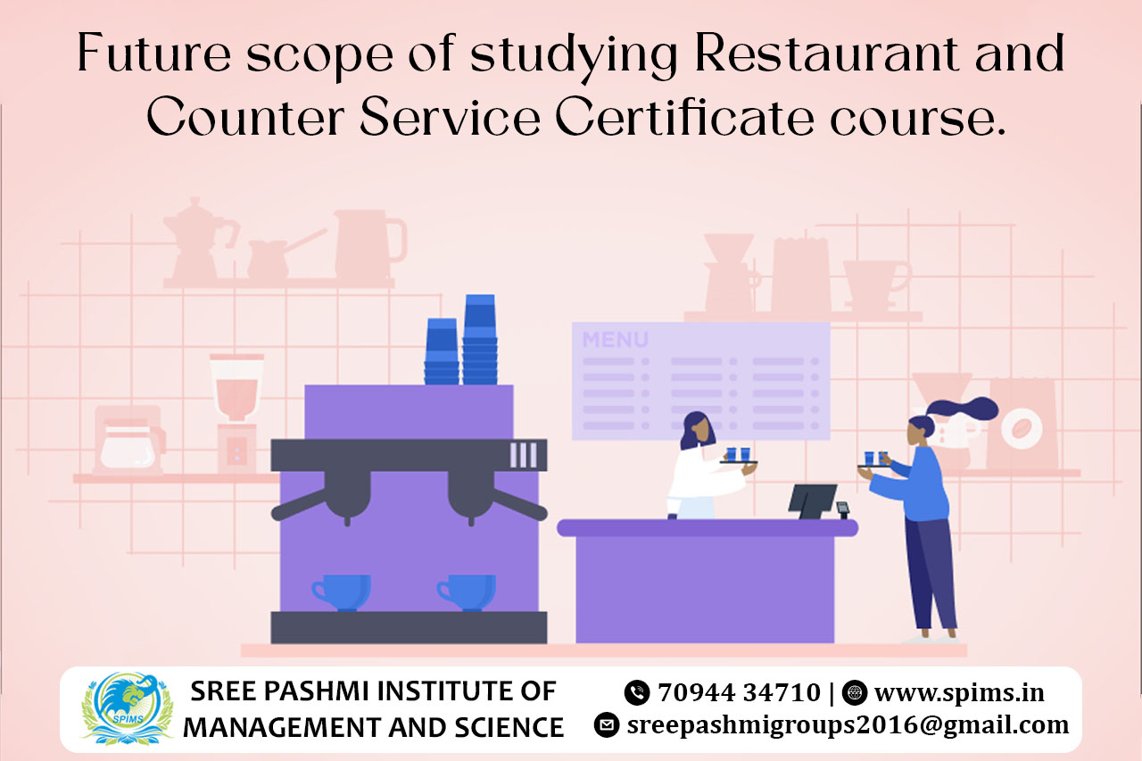 Restaurant and Counter Service Certificate course/ Restaurant and Counter Service course / Restaurant and Counter Service Degree/ Restaurant and Counter Service Eligibility/ Scope of Restaurant and Counter Service Certificate course/ Salary of Restaurant and Counter Service Certificate course / Restaurant and Counter Service Certificate course in top University Coimbatore / Restaurant and Counter Service Certificate course in online education in Coimbatore/ Importance of studying Restaurant and Counter Service Certificate course/ Restaurant and Counter Service Certificate course in top University India/Online Restaurant and Counter Service Certificate course/ Restaurant and Counter Service Certificate course in Online Education/ Career opportunities for Restaurant and Counter Service Certificate course graduate/Restaurant and Counter Service Certificate course distance education / Restaurant and Counter Service Certificate course in top University Tamilnadu Restaurant and Counter Service Certificate course in online education in Tamilnadu/ Subject involved in Restaurant and Counter Service Certificate course/ Benefits of taking Restaurant and Counter Service Certificate course/ Restaurant and Counter Service Certificate course in online education in India. Studying a Restaurant and Counter Service Certificate course can open up diverse and promising career opportunities in the hospitality and food service industry. The future scope for individuals with this qualification is substantial, offering a range of roles and possibilities: Restaurant Management:Graduates can pursue careers as restaurant managers, overseeing daily operations, managing staff, and ensuring a positive customer experience. Culinary Entrepreneurship:The certificate course equips individuals with the skills to start their own restaurant or food service business, fostering entrepreneurship in the culinary domain. Counter Service Specialist:Specializing in counter service, graduates can work in establishments offering quick-service options, managing customer interactions, and ensuring efficient service. Food and Beverage Supervisor:Graduates can take on supervisory roles in the food and beverage department of hotels, resorts, or other hospitality establishments. Catering and Event Management:With knowledge in restaurant and counter service, individuals can explore opportunities in catering and event management, handling food service for various events. Franchise Operations:Many restaurant chains offer franchise opportunities. Graduates can play a key role in managing and operating franchise outlets. Food Quality Control:Ensuring the quality and consistency of food service is essential. Graduates can work in roles focused on maintaining high standards of food preparation and service. Customer Service Specialist:With a focus on counter service, individuals can excel in customer service roles, ensuring customer satisfaction and building positive relationships. Trend Analysis and Innovation:The dynamic nature of the food industry requires professionals who can stay updated on food trends, innovate menu offerings, and adapt to changing consumer preferences. Sustainability in Food Service:As sustainability becomes a key focus in the industry, graduates can contribute to environmentally friendly practices in food service operations. Cross-functional Roles:The certificate course provides a versatile skill set, allowing graduates to take on cross-functional roles within hospitality, such as combining restaurant management with events or promotions. International Opportunities:The skills acquired in the program are transferable globally, providing opportunities for international careers in the hospitality and food service sector. Continuous Learning and Specialization:Graduates can further enhance their skills through continuous learning and specialization in areas such as culinary arts, food safety, or specific cuisines. Here at Sree Pashmi Institute of Management and Science, you can find all types of UG, PG, Diploma, PG Diploma, and certificate programs in the distance and online education modes. Enrolling in distance or online education courses via Sree Pashmi Institute of Management and Science, you can get UGC-approved degree certificates along with A+ grade mark sheets from your enrolled University. Also, we provide the students with exclusive online courses, live sessions, and other educational benefits.