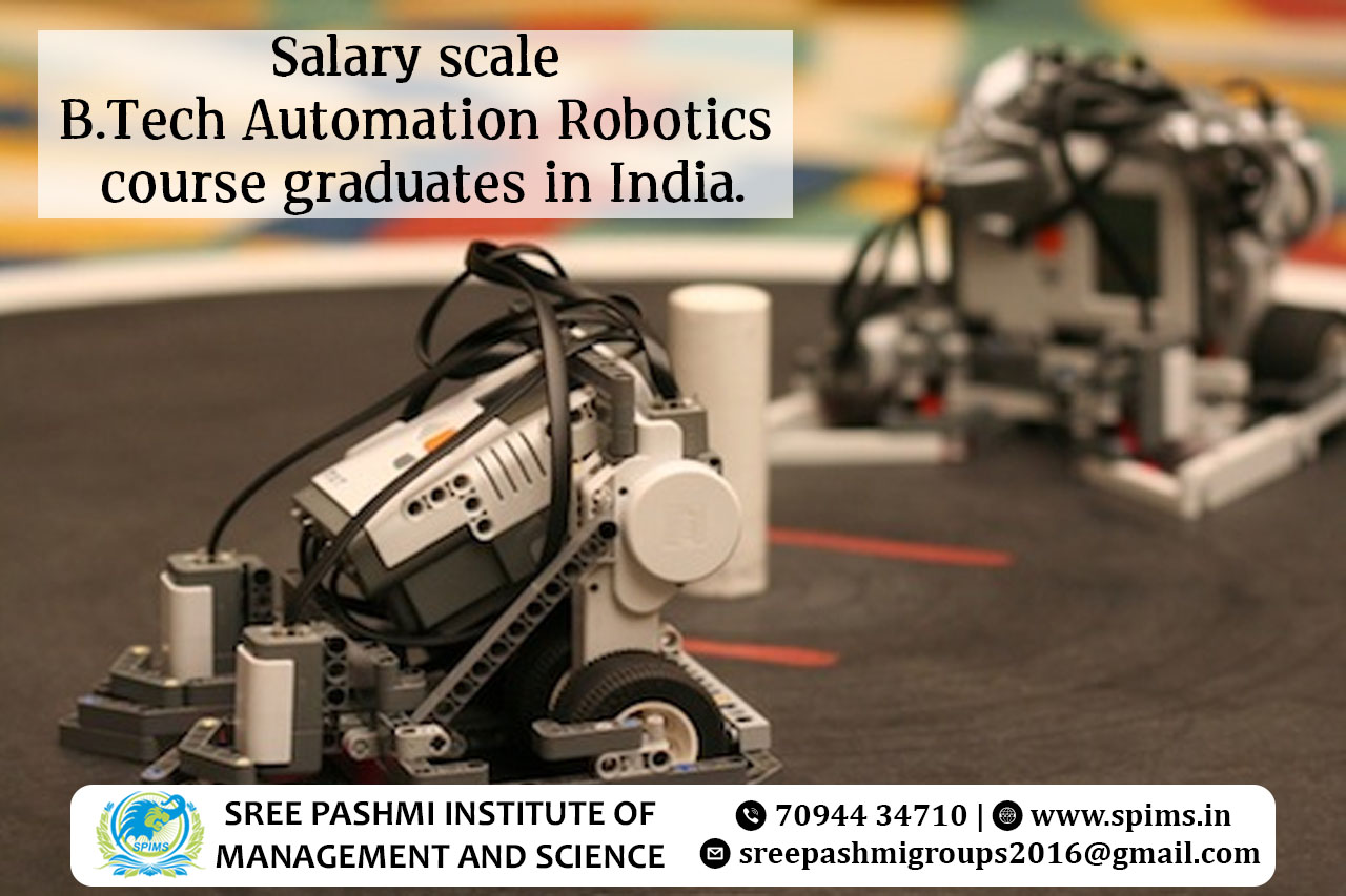 Salary of B.Tech Automation and Robotics/ B.Tech Automation and Robotics / B.Tech Automation and Robotics course / B.Tech Automation and Robotics Degree/ B.Tech Automation and Robotics Eligibility/ Scope of B.Tech Automation and Robotics / Importance of studying B.Tech Automation and Robotics/ Subject involved in B.Tech Automation and Robotics course/ Benefits of taking B.Tech Automation and Robotics/ B.Tech Automation and Robotics in Online Education/ Career opportunities for B.Tech Automation and Robotics graduate/B.Tech Automation and Robotics in distance education / B.Tech Automation and Robotics in top University India/B.Tech Automation and Robotics Tamilnadu / B.Tech Automation and Robotics in top University Coimbatore / B.Tech Automation and Robotics in online education in Coimbatore/ B.Tech Automation and Robotics in online education in Tamilnadu / B.Tech Automation and Robotics in online education in India. B.Tech Automation and Robotics graduates in India have promising career prospects with opportunities spanning various industries. The demand for automation and robotics professionals is driven by the growing need for efficiency, productivity, and technological advancement. Here's an overview of the career opportunities and salary scale for B.Tech Automation and Robotics graduates: Graduates can work as automation engineers, designing, implementing, and maintaining automated systems in manufacturing, process industries, and smart factories.Robotics engineers focus on the design, programming, and development of robotic systems for applications such as manufacturing, healthcare, and exploration.Professionals in control systems engineering work on developing and optimizing control systems for various processes, including those in manufacturing and industrial settings.Opportunities exist in research and development, where graduates can contribute to innovations in automation, robotics, and related technologies.With the rise of autonomous vehicles and drones, graduates can work on developing technologies for navigation, control, and decision-making in autonomous systems.As industries embrace the Internet of Things (IoT), graduates can specialize in integrating automation with IoT technologies for smart manufacturing and industrial applications. Entry-level positions for B.Tech Automation and Robotics graduates may offer an average annual salary ranging from ₹3.5 to ₹6 lakhs, depending on the industry and company.With a few years of experience, mid-level positions such as Automation Engineer or Robotics Engineer can command salaries in the range of ₹6 to ₹10 lakhs per annum.Senior roles, such as Lead Automation Engineer or R& D Manager, can attract salaries exceeding ₹10 lakhs per annum, especially for those with specialized skills or leadership responsibilities.Salaries may vary based on the industry, with opportunities in sectors like automotive, manufacturing, healthcare, and IT offering competitive compensation. Professionals with significant experience, expertise, and managerial roles can command higher salaries, with some reaching well above ₹15 lakhs per annum. Sree Pashmi Institute of Management and Science is the leading distance education center in Coimbatore. Here you can find all UG, PG, Diploma, Certificate, and PG Diploma programs in the distance and online modes of education. Especially, when you join Sree Pashmi Institute of Management and Science, you can receive 7-value added courses such as the management field, such as HR, Technology Management, Entrepreneurship, Finance and Accounting, Digital marketing, Sales and Marketing, and Personal Branding for free.