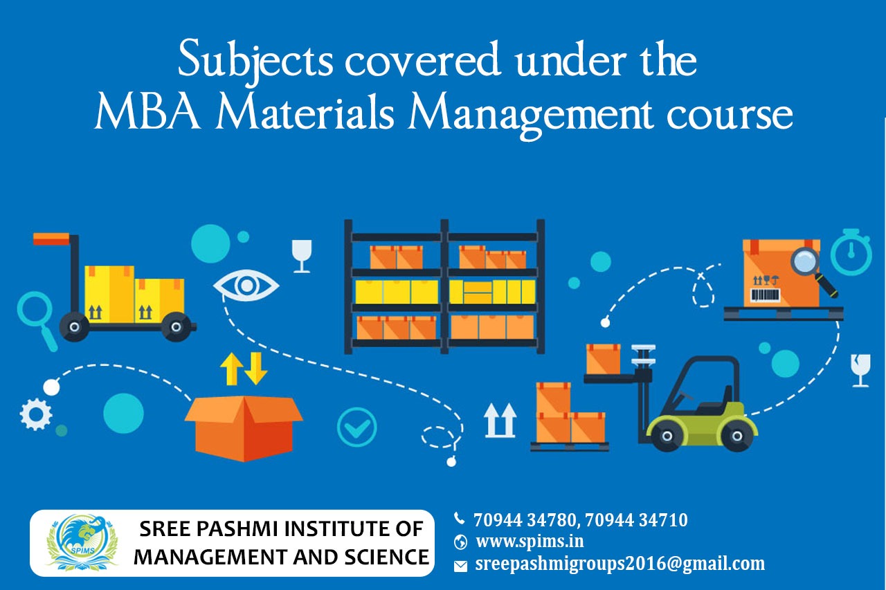Subject involved in MBA Materials Management course/ MBA Materials Management / MBA Materials Management/ What is it about/ Scope of MBA Materials Management / Salary of MBA Materials Management / Importance of studying MBA Materials Management/ MBA Materials Management distance education/ Benefits of taking MBA Materials Management / MBA Materials Management in distance education/ Eligibility for pursuing MBA Materials Management/ Career opportunities for MBA Materials Management graduate. The MBA Material Management syllabus focuses on studying both basics of business management and specialization in material management. Students are trained theoretically as well as practically in business administration and material management. The MBA Material Management syllabus covers material management, organizational behavior with legal aspects, introduction and principles of leadership, materials production planning, and controlling. MBA in Material Management course is a two-year post-graduation course with four semesters. Beyond academic subjects, few supplementary training such as corporate communication English, soft skills, seminar, viva, thesis writing, paper publication, research, and projects. Given below are the core subjects: → Project Management → Production Management → Business Communication → Business Policy and Strategic Management → Enterprise Resource Planning → Material Production Management → Material Production Planning and Control → Business Process Modeling → Research Methods for Management → Operations Management → Export Trade and Documentation → Packaging and Distribution Management → Logistics and Supply Chain Management → Purchasing and Procurement Management → Materials and Stores Management Given below are the elective subjects: → Management Control Systems International Financial Management Working Capital → Management of Corporate Taxation and Tax Planning → Enterprise Resource Planning Strategic Information Systems → Management Control Systems → Material Management and Insurance Marketing → Mutual Fund Management → Merchant Material Management → Business Environment and Ethics → Strategic Management → Database Management System Analysis → Design Communication Networks for Business Electronic Commerce → Data Mining and Data Warehousing Software Engineering Contact Sree Pashmi Institute of Management and Science to get enrolled for distance education degrees in the best-reputed university. This is the best leading institute for distance education in Coimbatore. All the study materials, E-materials, ID cards, Syllabus, Hall tickets, and Exam Time tables will be provided by us. You will get the proper guidance from the start till finishing your degree without any difficulties in between.