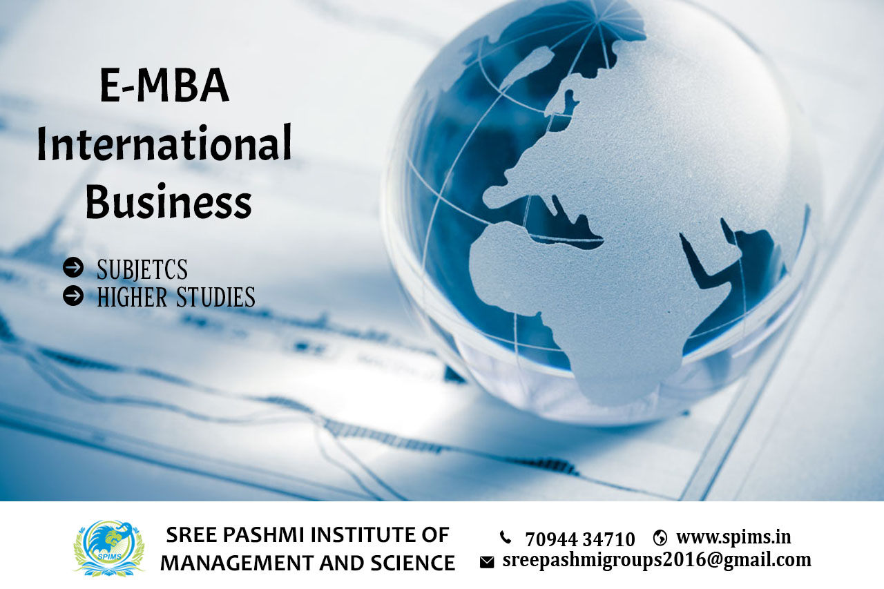 Subjects for E-MBA International Business / E-MBA International Business course / E-MBA International Business Degree/ E-MBA International Business Eligibility/ Scope of E-MBA International Business / Salary of E-MBA International Business / Importance of studying E-MBA International Business/ Subject involved in E-MBA International Business course/ Benefits of taking E-MBA International Business / E-MBA International Business in Online Education/ Career opportunities for E-MBA International Business graduate/E-MBA International Business distance education. E-MBA International Business in top University india/E-MBA International Business in top University Tamilnadu / E-MBA International Business in top University Coimbatore / E-MBA International Business in online education in Coimbatore/E-MBA International Business in online education in Tamilnadu / E-MBA International Business in online education in India / E-MBA International Business in Capital University/E-MBA International Business in Jain University / E-MBA International Business in Kalinga University. The e-MBA International Business program focuses on the unique challenges and opportunities involved in conducting business across borders and prepares individuals for leadership roles in global organizations. The subjects covered in an E-MBA in International Business program can vary depending on the curriculum of the specific program and institution. → International business strategy → Global economics → Cross-cultural management → International Marketing → International Finance → Global supply chain management → International trade and investment → Global business law and Ethics → Emerging markets → Global leadership and negotiation skills After completing an E-MBA in International Business, individuals may consider pursuing further studies in related fields or areas of interest. Some higher study options → Doctorate in Business Administration (DBA) → Ph.D. in International Business → Specialized Master's Programs The choice of higher study options depends on an individual's career goals, interests, and aspirations. Sree Pashmi Institute of Management and Science is the leading distance education center in Coimbatore. Here you can find all UG, PG, Diploma, Certificate, and PG Diploma programs in the distance and online modes of education. Especially, when you join Sree Pashmi Institute of Management and Science, you can receive 7-value added courses such as the management field, such as HR, Technology Management, Entrepreneurship, Finance and Accounting, Digital marketing, Sales and Marketing, and Personal Branding for free.