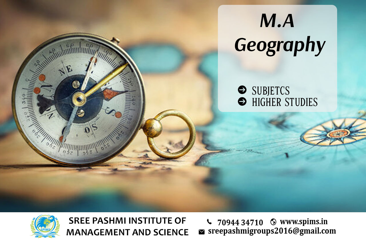 Subjects for M.A Geography / M.A Geography course / M.A Geography Degree/ M.A Geography Eligibility/ Scope of M.A Geography / Salary of M.A Geography/ Importance of studying M.A Geography/ Subject involved in M.A Geography course/ Benefits of taking M.A Geography / M.A Geography in Online Education/ Career opportunities for M.A Geography graduate/M.A Geography distance education / M.A Geography in top University India/M.A Geography in top University Tamilnadu / M.A Geography in top University Coimbatore / M.A Geography in online education in Coimbatore/M.A Geography in online education in Tamilnadu / M.A Geography in online education in India / M.A Geography in Capital University/M.A Geography in Jain University /M.A Geography at Kalinga University The subjects covered in M.A Geography may vary slightly from one institution to another. However, common subjects included in the course curriculum are - → Physical Geography → Human Geography → Geographical Information Systems (GIS) → Remote Sensing → Environmental Geography → Urban Geography → Regional Planning → Geopolitics → Cartography → Research Methodology After completing your M.A Geography, you have various higher studies options available M.Phil. in Geography - You can pursue a Master of Philosophy (M.Phil.) program in Geography, which involves advanced research and specialization in a specific area of geography. Ph.D. in Geography - If you have a keen research interest, you can opt for a Ph.D. program in Geography. This will allow you to conduct in-depth research, contribute to the field, and pursue a career in academia or research institutions. Contact Sree Pashmi Institute of Management and Science to get enrolled for distance education degrees in the best-reputed university. This is the best leading institute for distance education in Coimbatore. All the study materials, E-materials, ID cards, Syllabus, Hall tickets, and Exam Time tables will be provided by us. You will get the proper guidance from the start till finishing your degree without any difficulties in between.